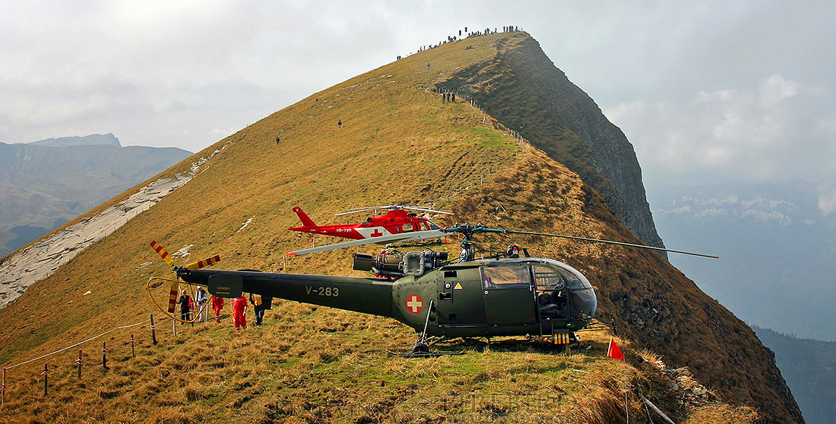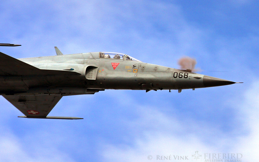In the live-fire air-to-air demo the action was too far away, and lone spectators could be hit by cannon shells that hit the Axalphorn ridge. They used an Alouette lll helicopter to make sure the area was clear before firing commenced, but it was still an issue.