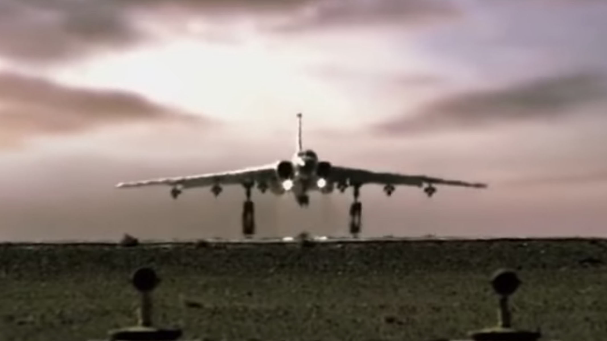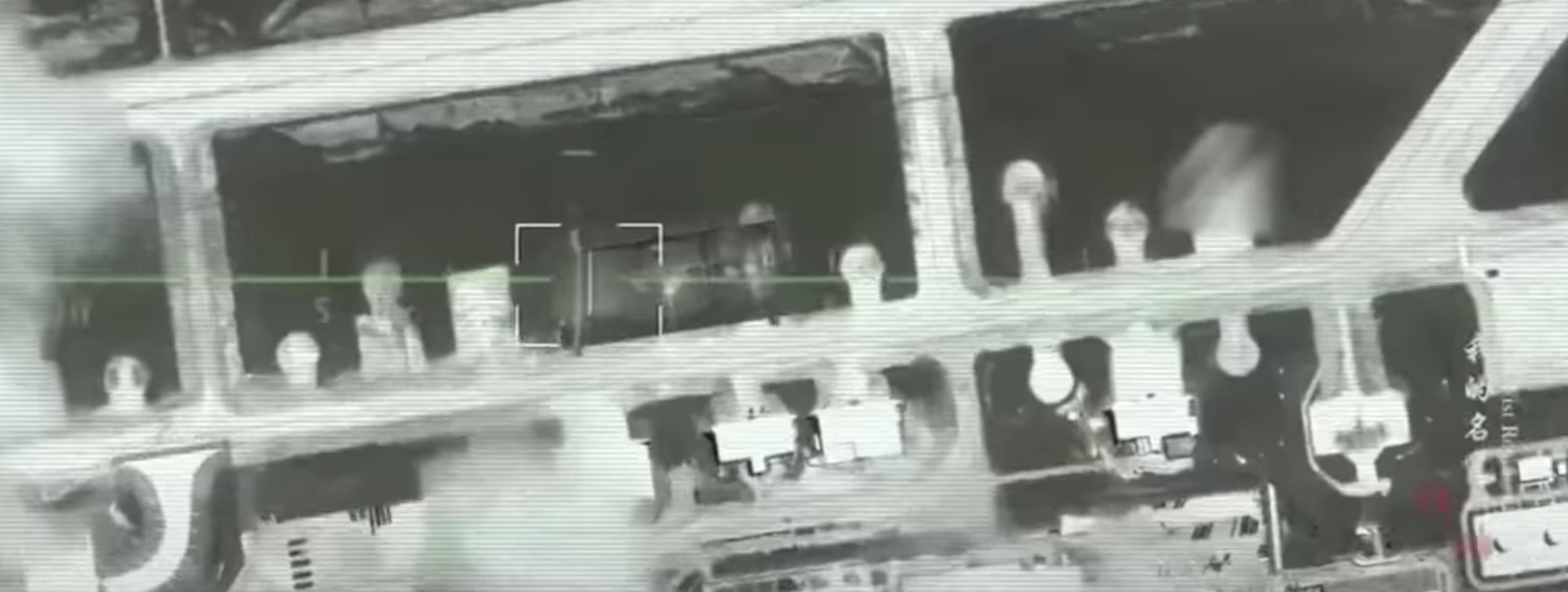 After the twin-engine H-6s are seen taxiing and taking off. We then switch to an in-cockpit sequence, although the six color multifunction cockpit displays introduced on the flight deck of the H-6K variant are not shown. This is immediately followed by a computer-generated missile launch seen from the pilots’ perspective, with a missile streaking towards an air base on an island’s coast, and footage of airstrikes that is made to look like it’s been harvested from targeting pod and missile seeker imagery.
