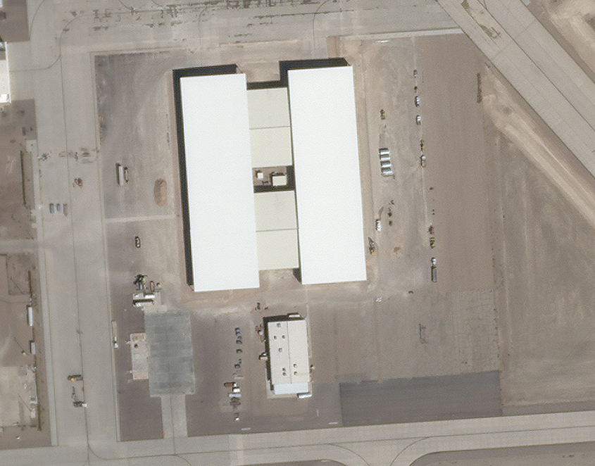 So, what is this somewhat peculiar addition all about? For hangars that easily fit one F-117 each with plenty of room to spare, having a huge covered structure built onto them doesn’t make a lot of sense, at least not for their original purpose, and especially on both sides of what are already drive-through hangars. As such, it seems that this revamped facility is not meant for a small number of large tactical aircraft, but instead, it seems to have been remodeled to support a fleet of smaller tactical aircraft, ones that are designed to fly together in a collective swarm on missions.