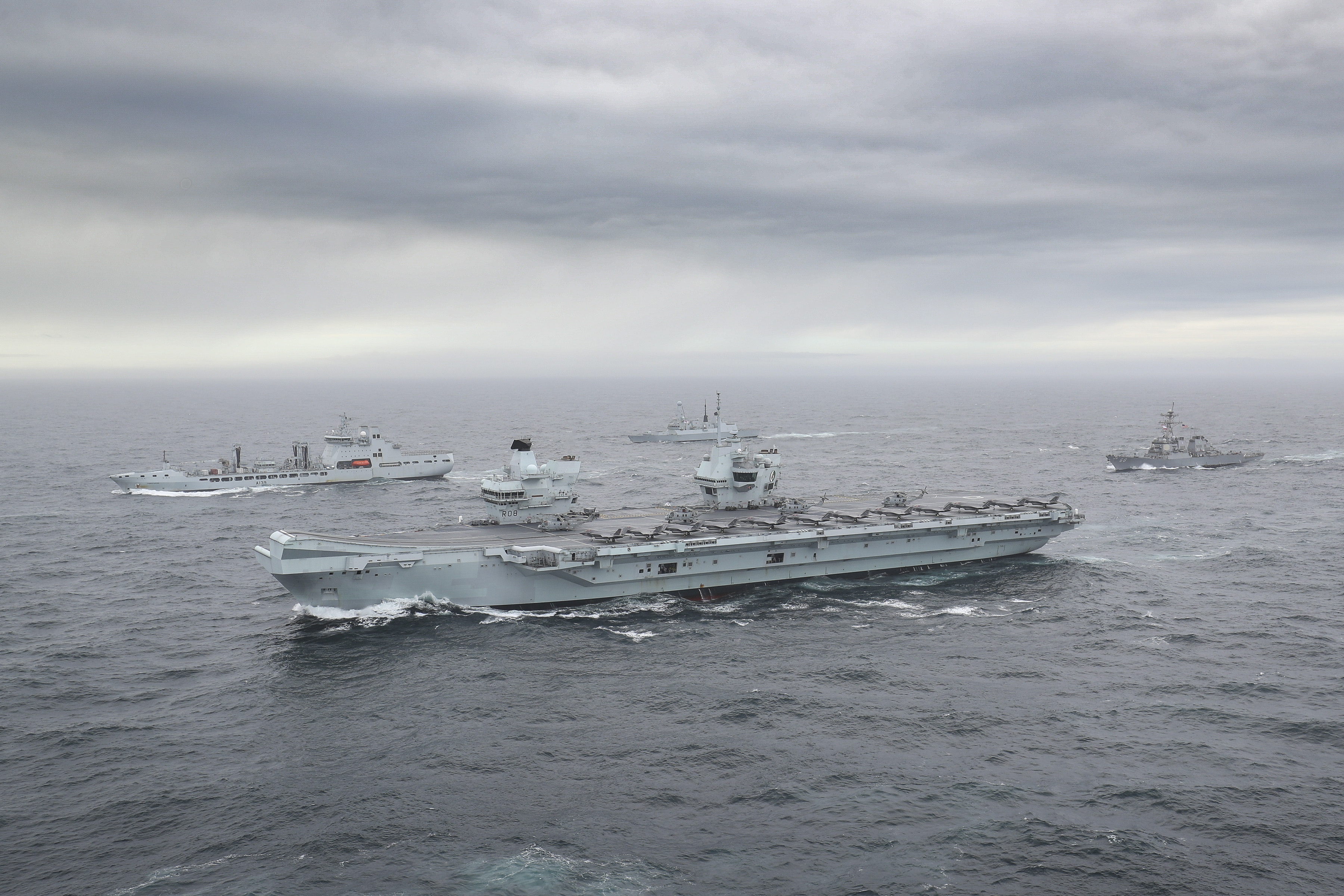 Support vessels for the strike group are a pair of Royal Fleet Auxiliary ships, RFA Tideforce and RFA Fort Victoria, which will ensure operations run smoothly by supplying fuel, food, spares, and ammunition.