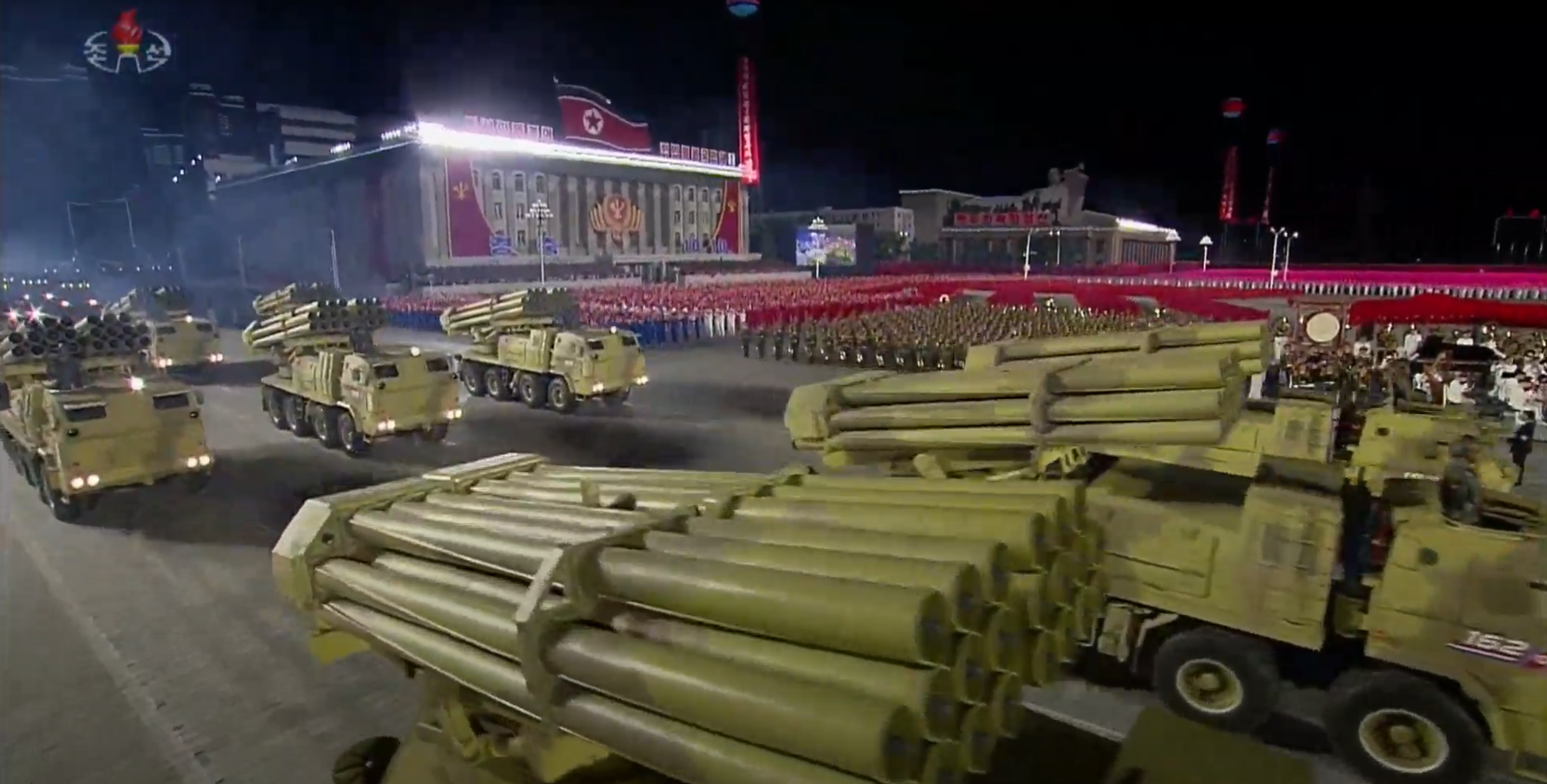 Developments on the tactical side of North Korea’s missile equation are just as stunning. North Korea paraded a host of its new generation of very large rocket artillery systems. These border on the tactical ballistic missile definition, to some degree, and are meant to rain warheads down deep inside South Korean territory during the opening stages of a conflict. North Korea’s rapid development and fielding of these jumbo rocket artillery systems have changed the risk equation for South Korea. Whereas areas not too far from the DMZ, including part of Seoul, were at risk of artillery bombardment in the past, that zone now pushes far deeper to the south as a result of these systems, all of which are new or developed relatively recently. These systems are also less costly and challenging for North Korea to build compared to their strategic counterparts, so serial production can be realized on a far greater scale.