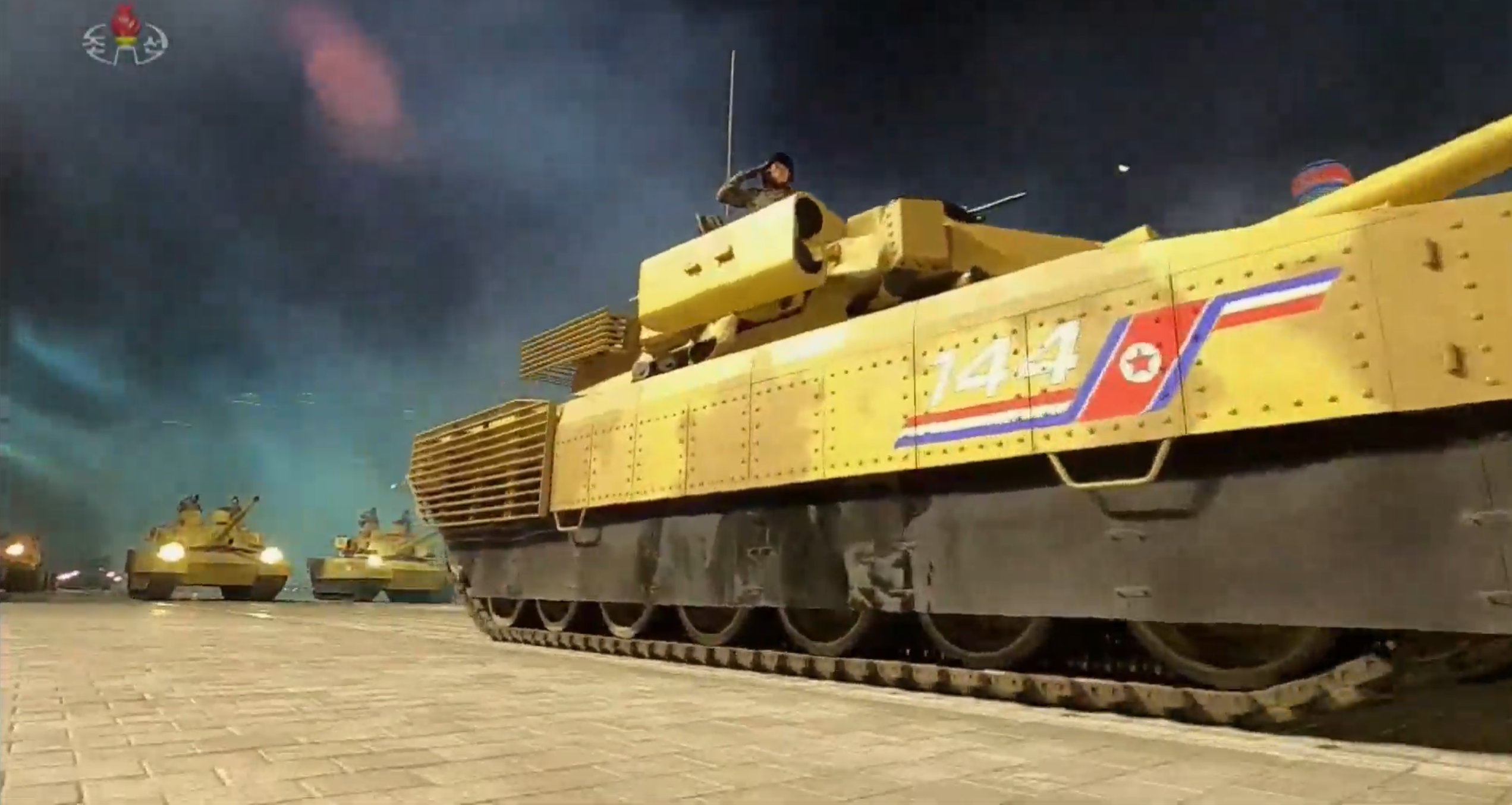 Now to armor. North Korea really stunned in this regard, unveiling a number of new armored vehicles, the most impressive of which is a brand new main battle tank. As you can see, the design is quite modern in outward appearance, with integrated systems embedded into its design, not just tacked on after the fact. These including anti-tank missile launchers mounted on the sides of the turret. The tank alone is worth its own analysis piece. It is quite remarkable North Korea was able to come up with this, although what chassis and drivetrain lie beneath its skin is a big question.