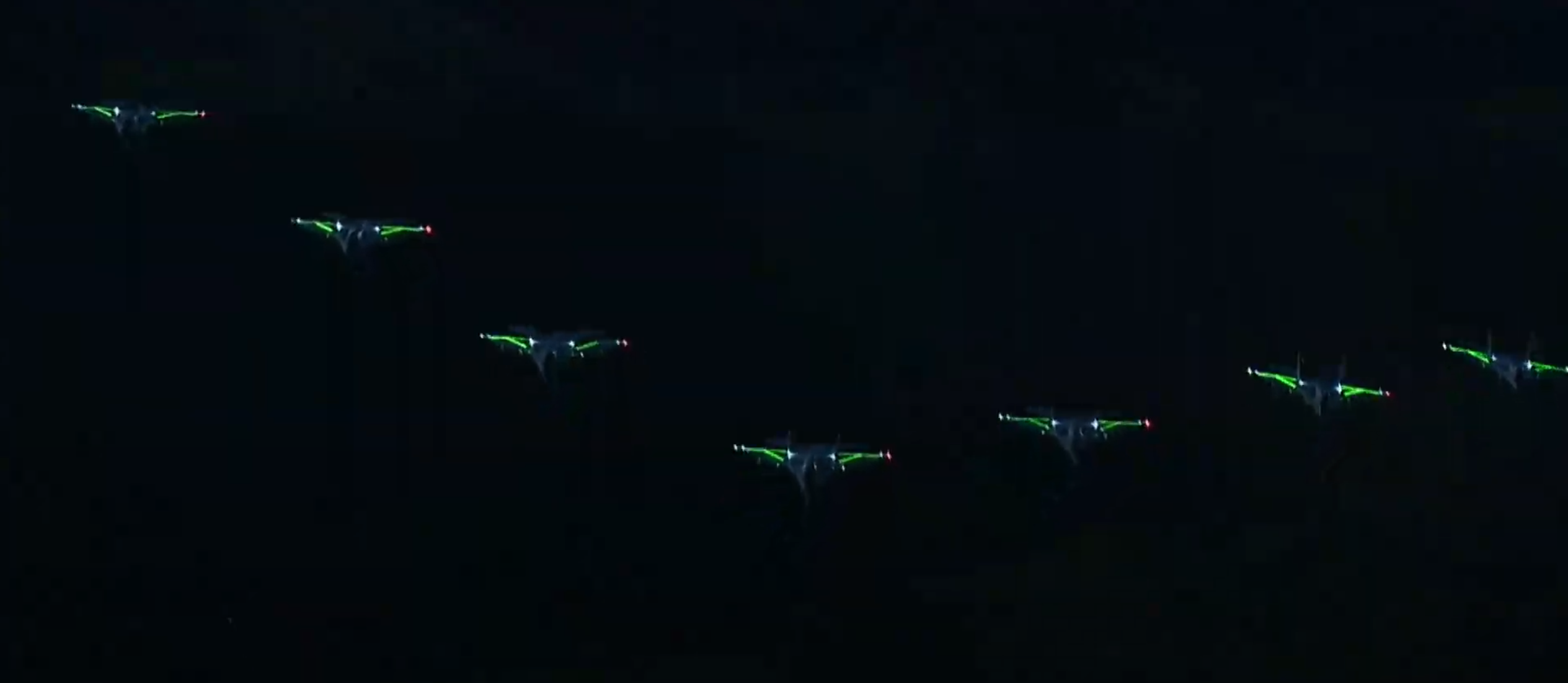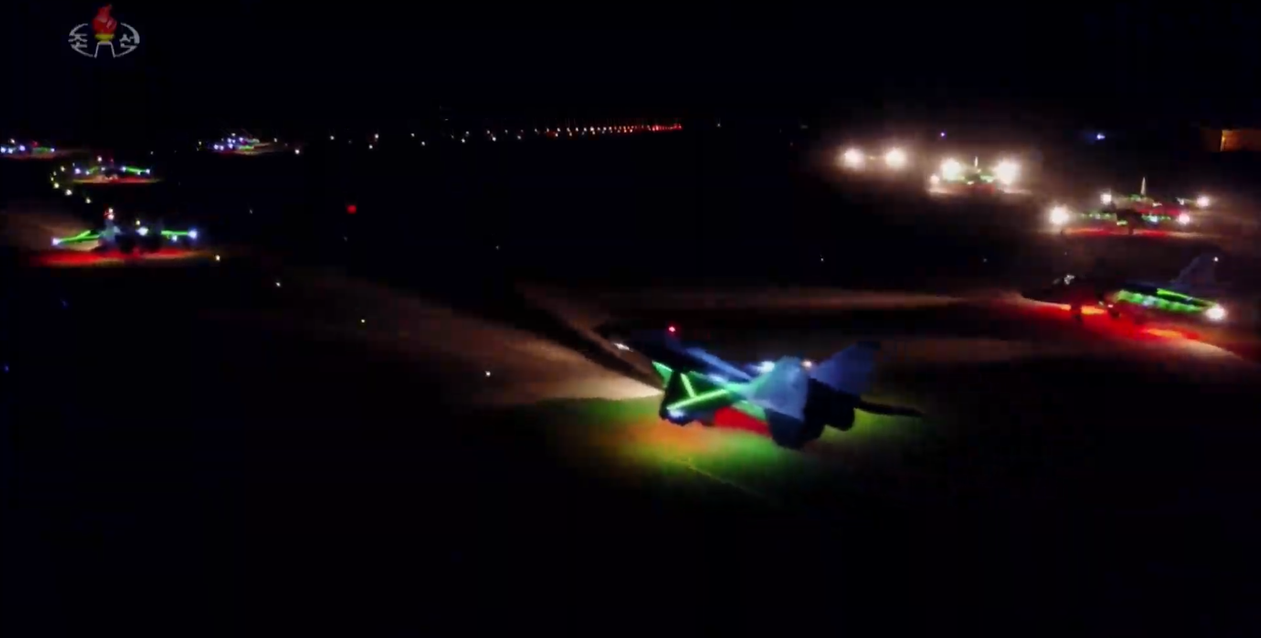 The aerial display itself was quite remarkable. Incorporating LED light strips on combat aircraft is not an established practice. It may seem easy, but it really isn’t. Securing them in such a way that they won’t damage the aircraft if they come loose, especially considering how few of these planes North Korea has, would have been a critical task. The production of the flying segment, with the video leading up to it and in the air, likely filmed during previous practice flights and then cut into the performance, was remarkably high-grade.