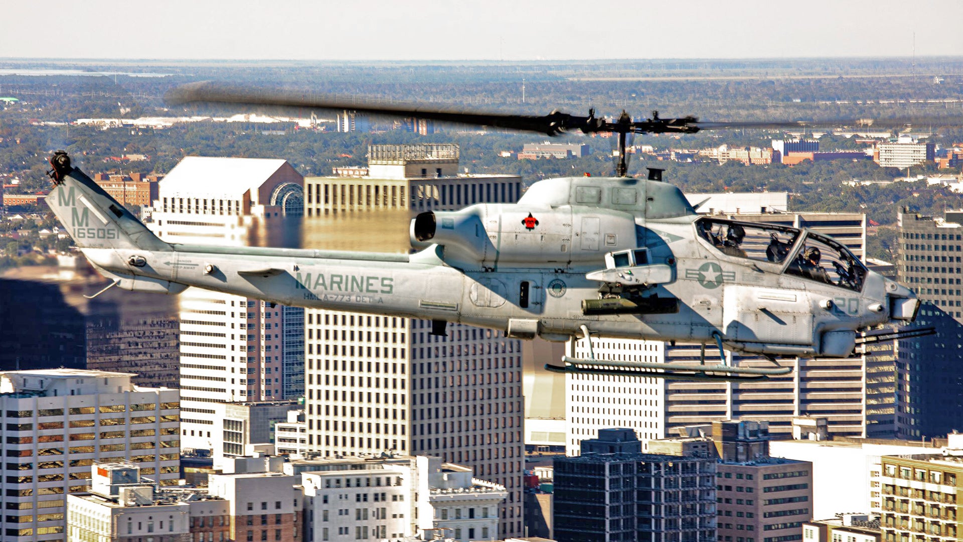 An official final flight for the AH-1W took place at Naval Air Station Joint Reserve Base New Orleans, Louisiana, on October 14, 2020, as part of the “Whiskey Sundown Ceremony.” This also included a photo sortie over New Orleans together with its successor, the AH-1Z Viper. The last “Whiskey” sortie was performed by Detachment A of Marine Light Attack Helicopter Squadron 773, the “Red Dogs,” part of the Reserve Forces, based at New Orleans.