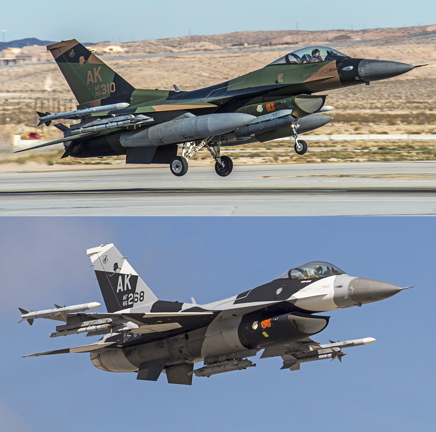 One of the most striking schemes flying today on any fighter is the splinter camouflage pattern that is flown on the 18th Aggressor Squadron’s Block 30 F-16C/Ds based up at Eielson AFB in Alaska. We have the design in both the ‘BDU’ and ‘Arctic’ varieties, just as they exist on the jets! Buy one or both here and here!