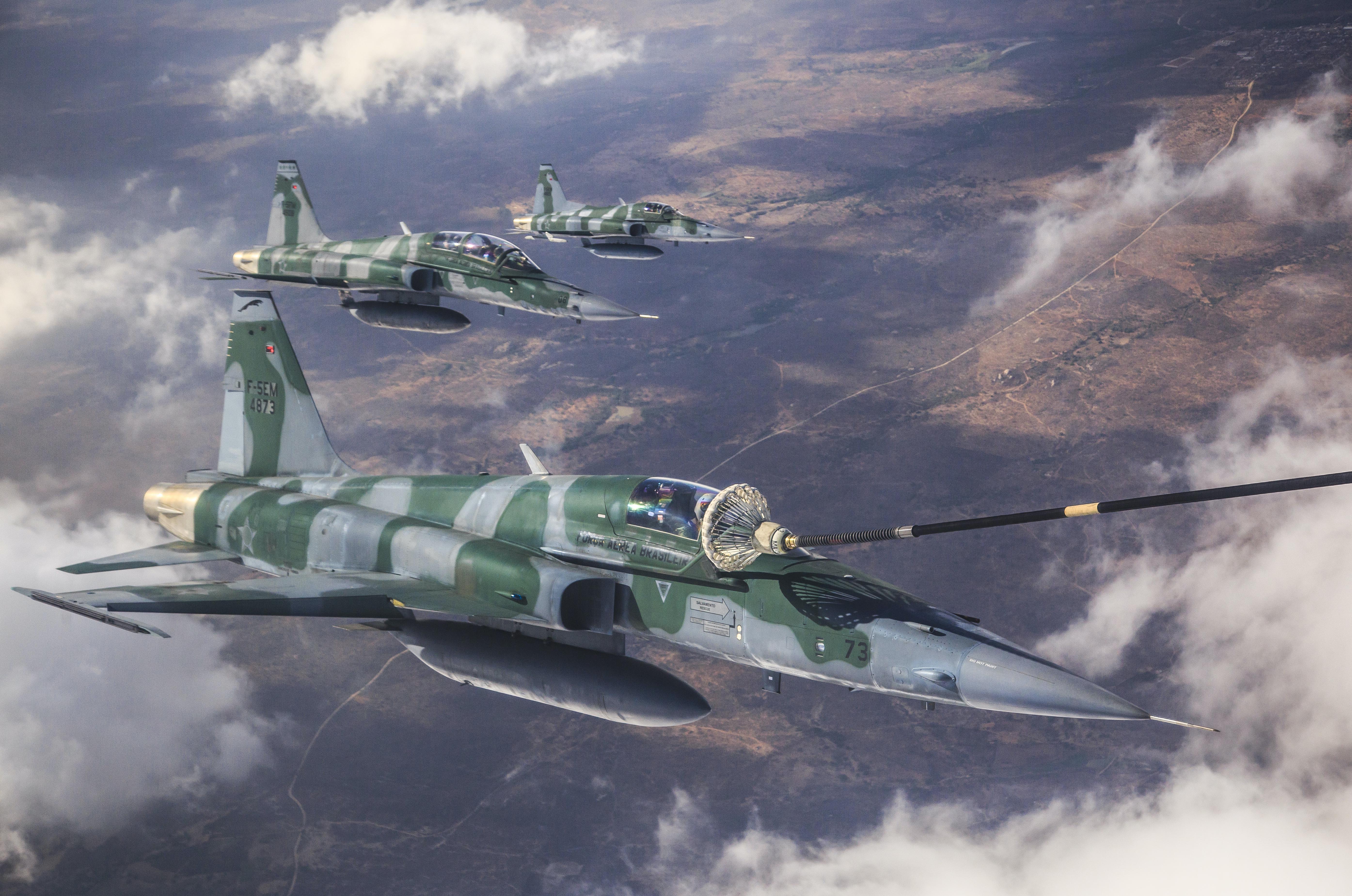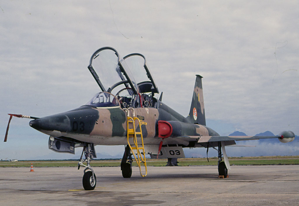 Brazil purchased 68 F-5s from the United States, with the first Peace Amazon contract signed in 1973. The U.S.-supplied fleet ultimately included 58 single-seat F-5E Tiger IIs, four two-seat F-5Fs, as well as six two-seat F-5B Freedom Fighter trainers. The older F-5Bs were supplied pending availability of the more advanced F-5F, which didn’t arrive until 1988, alongside a final batch of F-5Es, all of which were ex-U.S. Air Force aggressor machines.