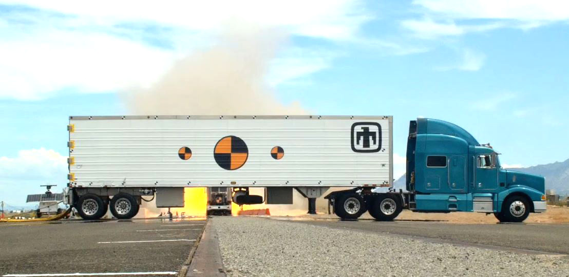 In what was said to be the largest such test in decades, employees at Sandia National Laboratories recently used rockets to propel a tractor-trailer truck down a track and into a prototype of a new semi-trailer designed to securely move nuclear warheads around the country. This destructive testing is part of the qualification process of the new Mobile Guardian Transporter, or MGT, and the data will also be used to help model accident scenarios involving trucks carrying America’s deadliest weapons.
