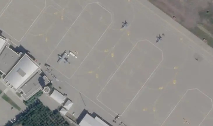 A screenshot of the image of Azerbaijan’s Gabala International Airport, as seen through Maxar Technologies’ SecureWatch tool, first emerged on social media on Oct. 25, 2020. There are four F-16s visible in the shot, which is said to be dated Oct. 19, but reports say that the full imagery shows two more Vipers at the airport, as well.