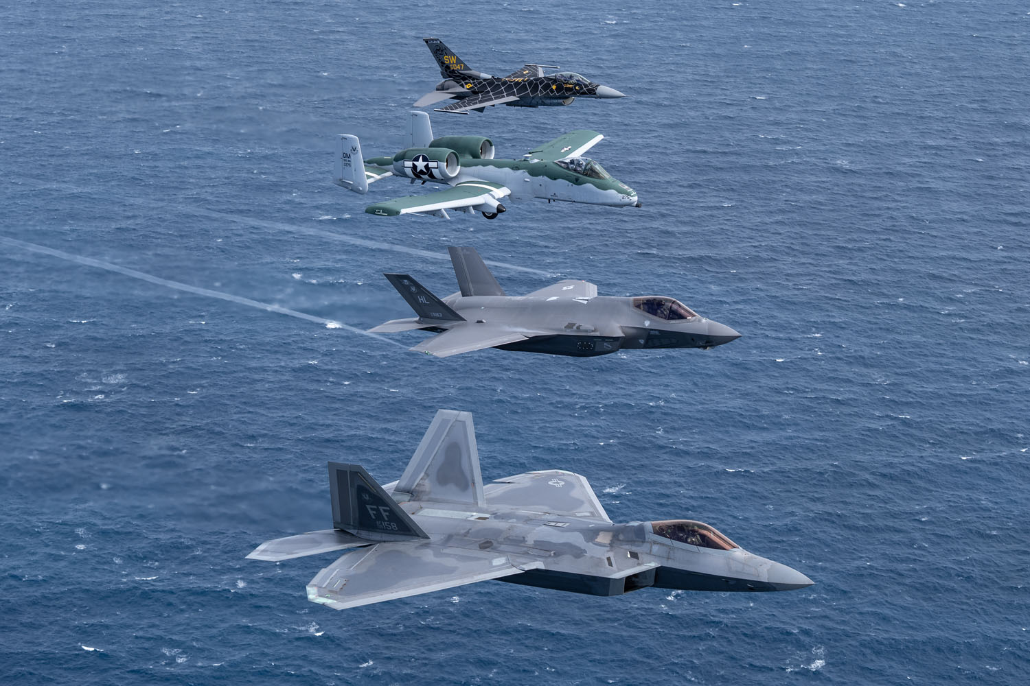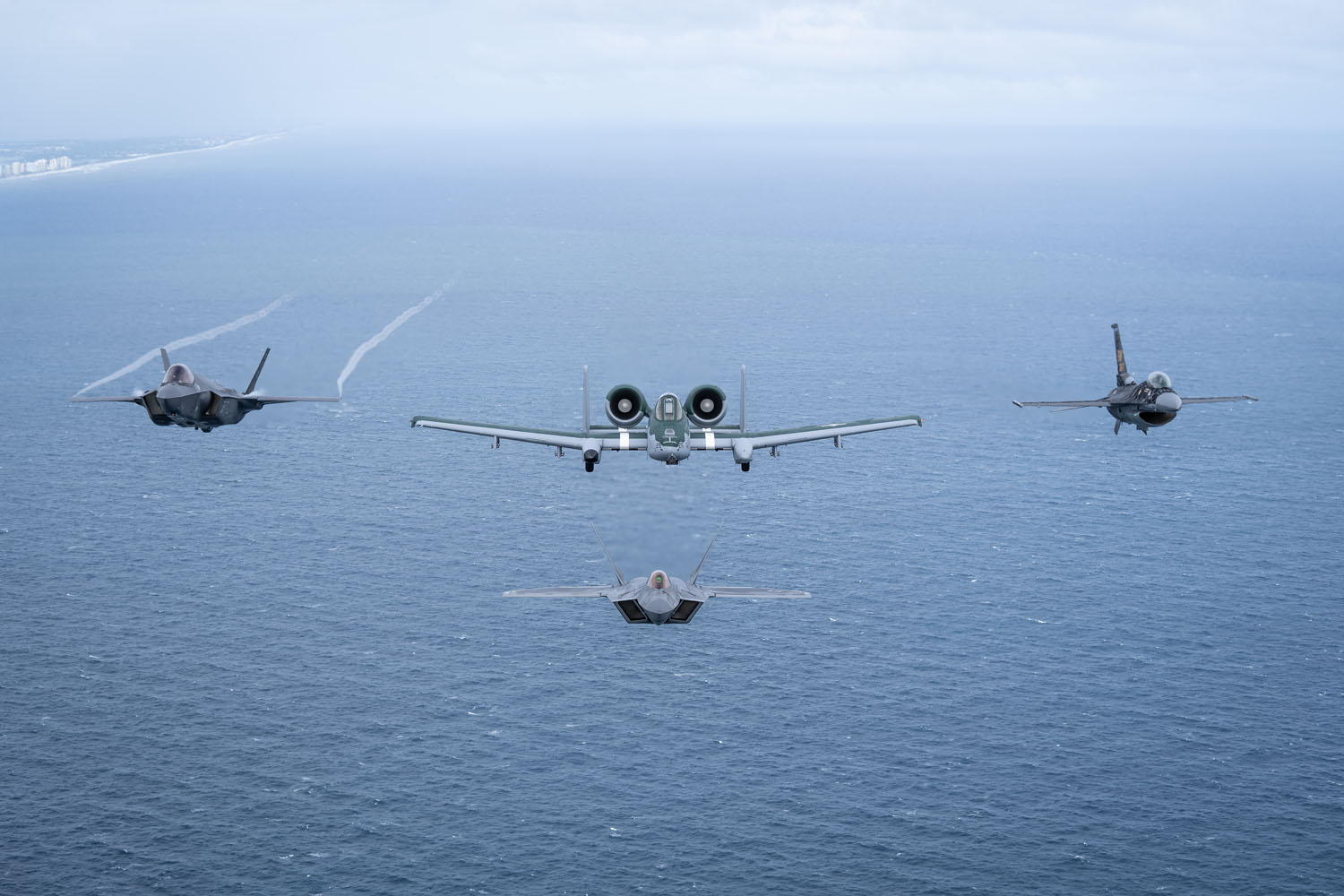 The weirdest air show season in memory is wrapping up and all four of the Air Force’s tactical jet demonstration teams have converged on Southern Florida for the Fort Lauderdale Air Show that will run from November 21st through the 22nd. Prior to the weekend’s festivities, the teams set a little time aside for one heck of a photo mission, joining up behind a C-130 flying off the Sunshine State’s coast. With an A-10, F-16, F-22, and F-35 in tow, the quartet posed for dramatic images by flying different formation configurations behind and around the ‘Herky Bird.” The rare photo flight resulted in some extremely high-impact and gorgeous shots.