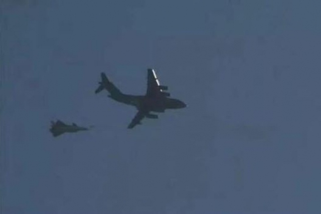 Unlike a previous image that also emerged on social media on November 21, and which was later revealed to be manipulated, the new image appears to be the real deal. The new photo shows a Y-20, apparently still in primer paint, and with characteristic enlarged engine nacelles, accompanied over Xi’an-Yanliang Air Base by a J-11 Flanker chase plane — standard procedure for such a test flight.