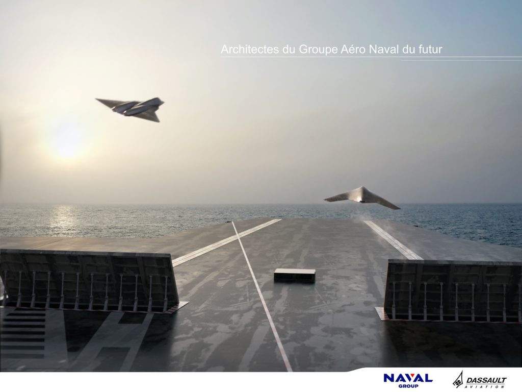 Naval Group’s concept art, as seen below, shows NGFs on the flight deck. It also shows E-2 Hawkeye carrier-borne airborne warning and control aircraft and an NH90 helicopter, both of which the French Navy operates now.