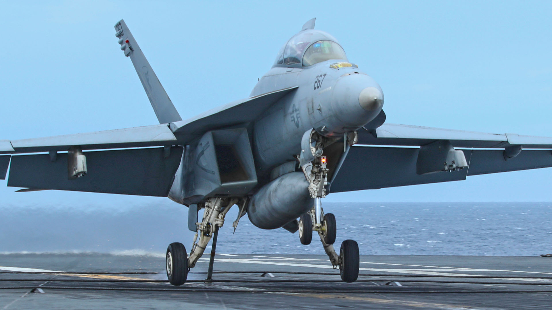 However, the advent of new flight control software has almost done away with the need to wrestle an unforgiving carrier-borne aircraft onto a narrow flight deck. So-called Delta Flight Path (DFP) technology was conceived to help make the F-35C Lightning II far easier to land on an aircraft carrier, even with a pitching and rolling deck. It led to a spin-off program for the F/A-18E/F Super Hornet and EA-18G Growler that is known as Magic Carpet, or PLM — Precision Landing Mode. This too features enhanced flight control logic that is designed to make the carrier landing easier and more predictable for the pilot.