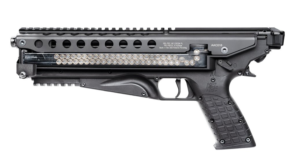 While PDW cartridges have already been adopted in multiple handgun platforms, most notably Fabrique Nationale’s FN Five-seveN, American gunmaker Kel-Tec just announced a pistol that looks more like it belongs on the set of a sci-fi film than in a holster of a soldier or law enforcement officer. Oh, and this new weapon packs a whopping 50 high-velocity rounds in a single magazine.
