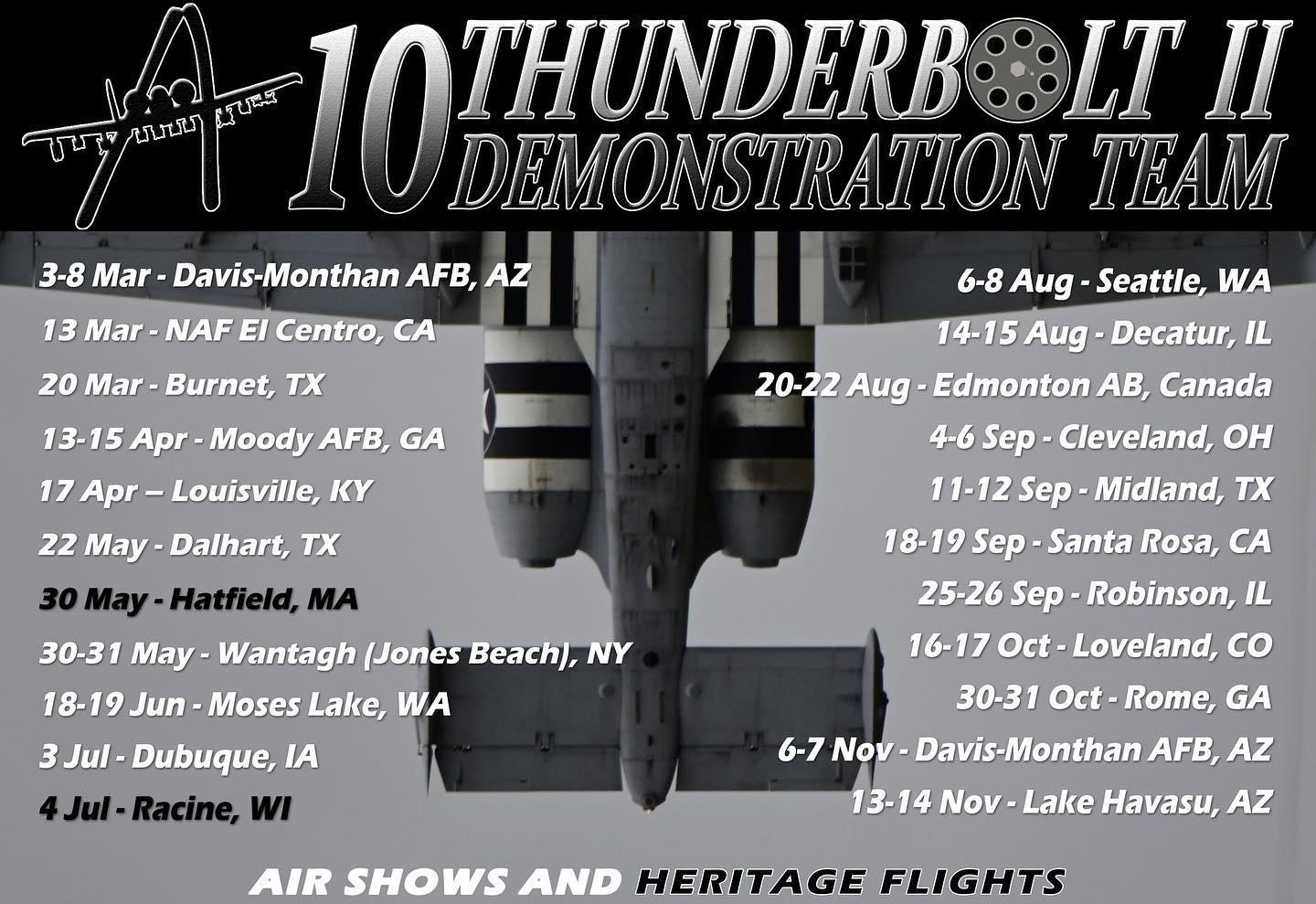 You can check out the A-10 Demo Team this year at the locations and dates shown below: