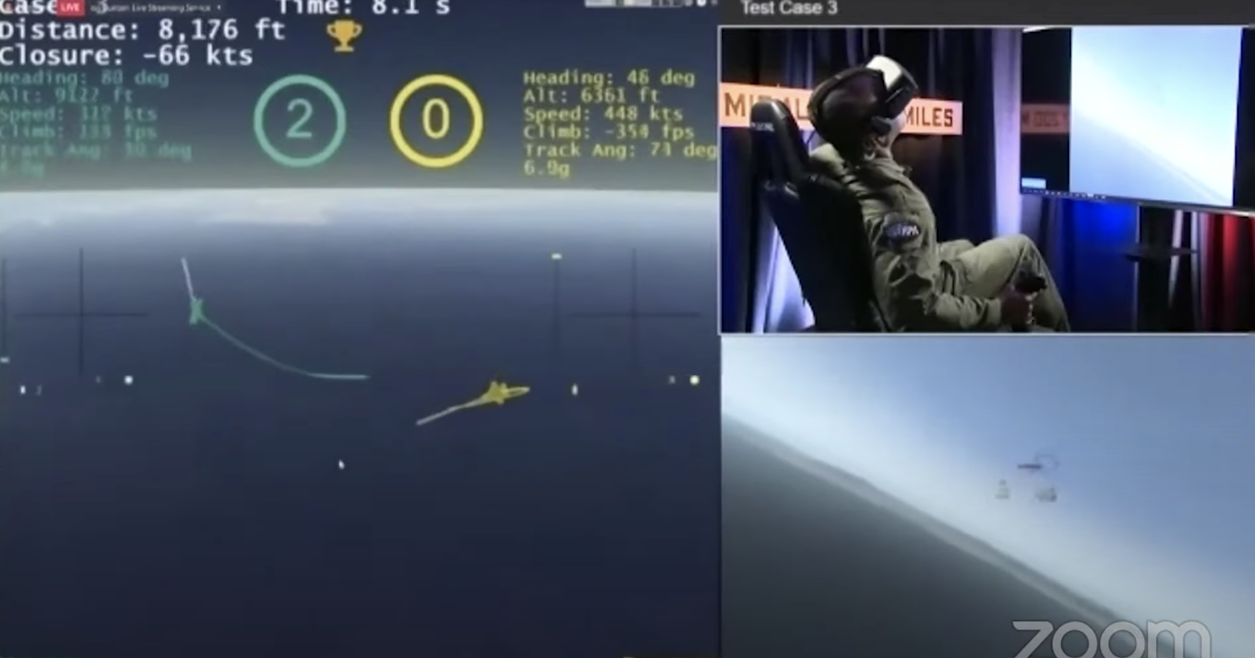 “Adding more weapon options and multiple aircraft introduces a lot of the dynamics that we were unable to push and explore in the AlphaDogfight Trials,” Javorsek added. “These new engagements represent an important step in building trust in the algorithms since they allow us to assess how the AI agents handle clear avenues of fire restrictions set up to prevent fratricide. This is exceedingly important when operating with offensive weapons in a dynamic and confusing environment that includes a manned fighter and also affords the opportunity to increase the complexity and teaming associated with maneuvering two aircraft in relation to an adversary.”