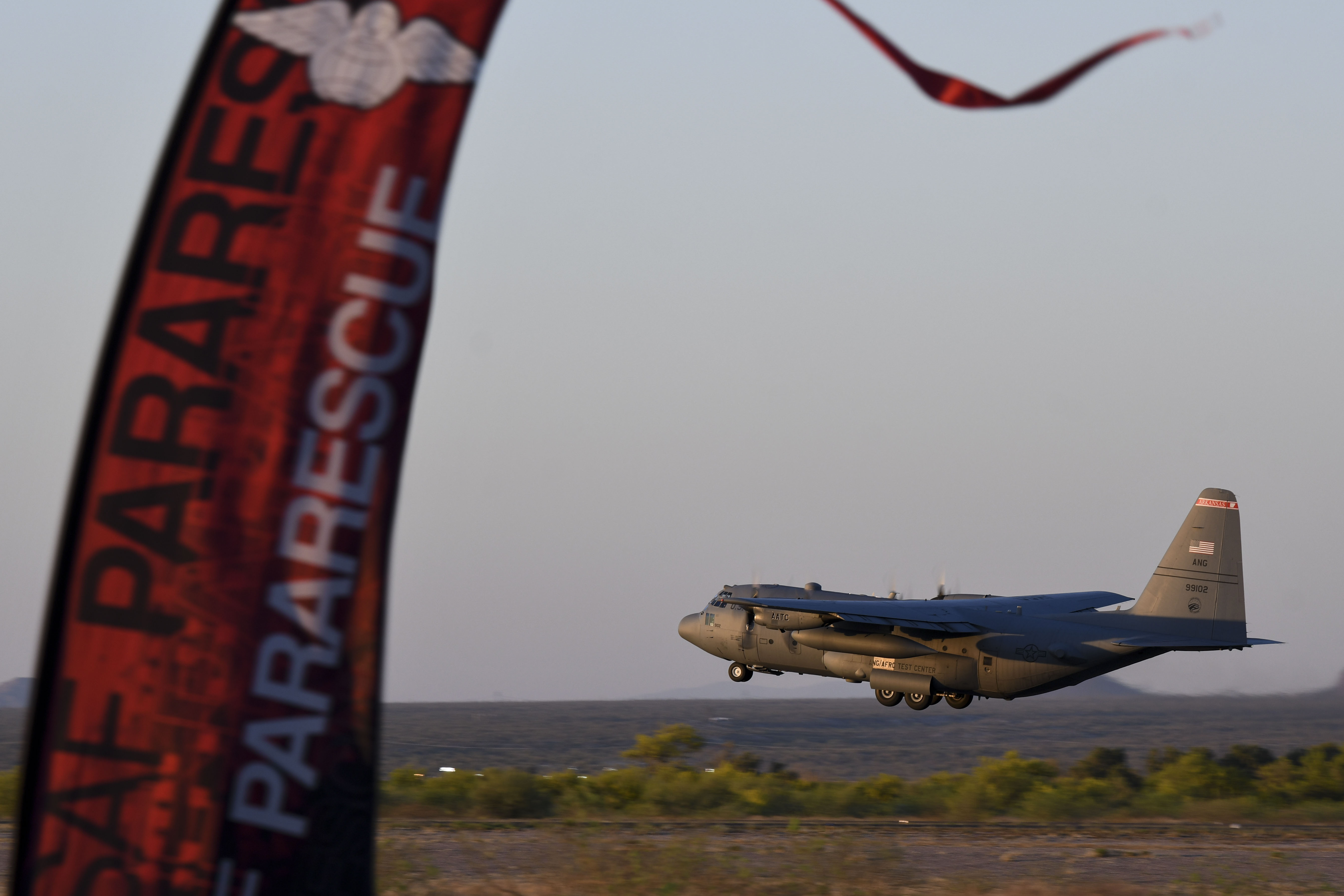 Update, April 16: Following the publication of the original article, Northrop Grumman got in touch with us to confirm that their Litening pod is also undergoing tests on other C-130s as part of the SABIR installation. This is the Special Airborne Mission Installation and Response system that we mentioned would also be a suitable candidate for mounting the pod on a Hercules. In this case, the pod has recently been flight tested on HC-130J Combat King II rescue aircraft flown by the Air National Guard in Alaska and at Red Flag. In addition to supporting precision airdrops of pallets, the pod can also support paratrooper jumps, the company explains. This would be ideal for the HC-130J mission of delivering pararescue jumpers, who will typically provide emergency treatment to patients before they are extracted by helicopters.