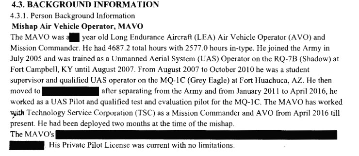 The immediate cause of the accident and any associated factors, as well as any details about recommended disciplinary action or changes to tactics, techniques, and procedures made in light of the mishap, are entirely redacted. The report does mention poor weather over Erbil, as well as an unspecified mission area, during the sortie. The Air Force said that aircraft, valued at $3.4 million, was a “total loss.”