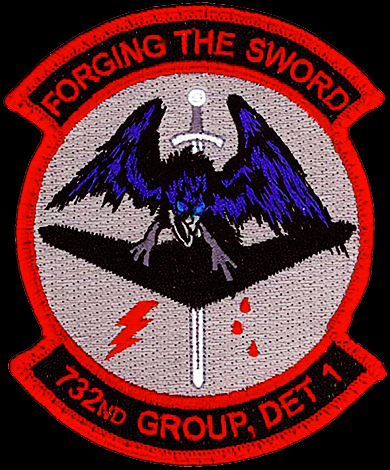 OL-W was still active at Tonopah at least as of 2013, the same year that Detachment 1 of the 732nd Operations Group, a part of the 432nd Wing, was stood up at Creech. A unit patch for that detachment includes the phrase “Forging the Sword,” which had previously indicated could refer to the development of new concepts of operation relating to the RQ-170, as well as other advanced unmanned aircraft. That same patch had a lightning bolt and three drops of blood, which could be references to electronic warfare and armed strike mission sets. The logo also had the silhouette of an RQ-170 and raven identical to the one found on the official 30th Reconnaissance Squadron insignia.