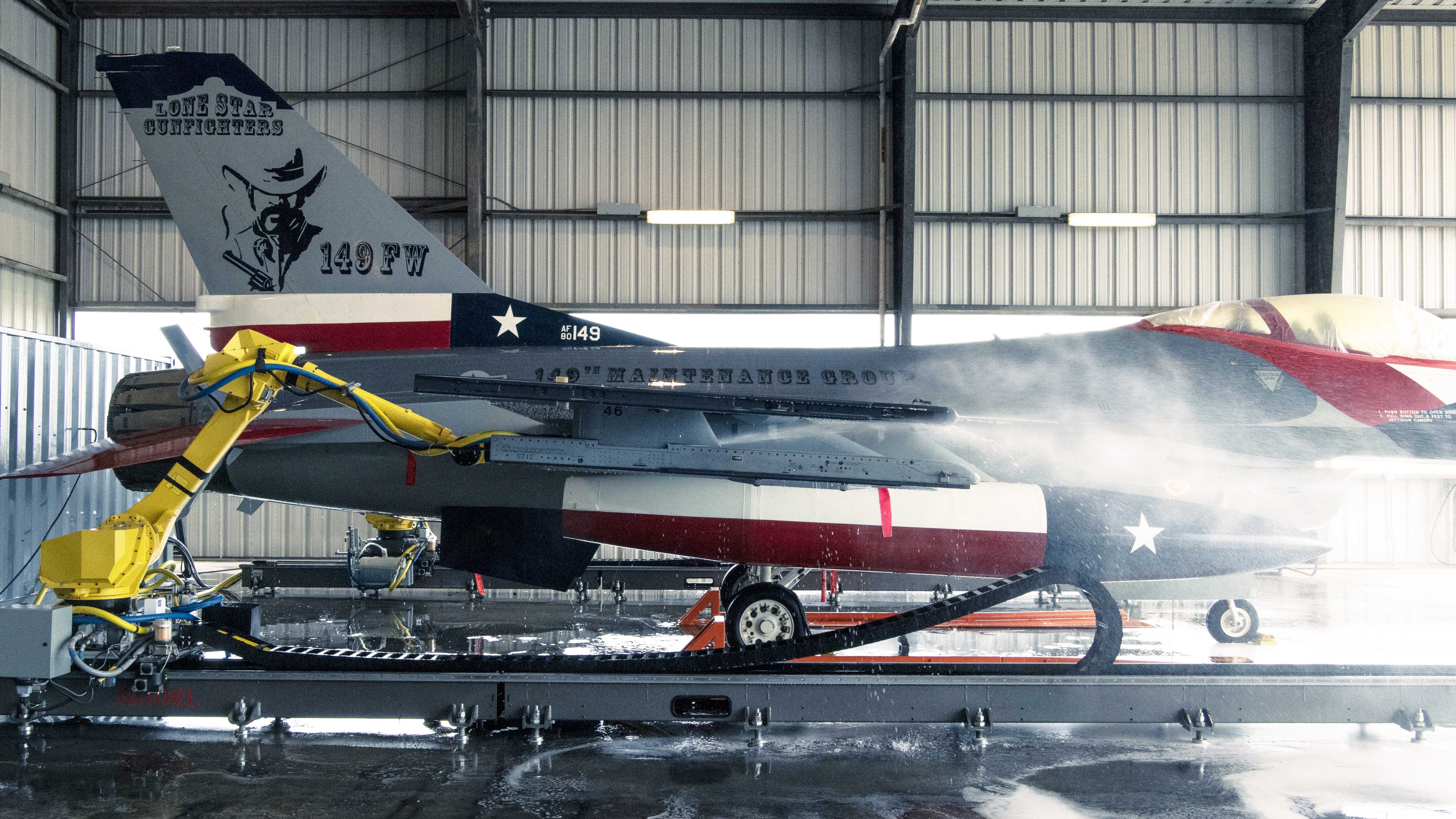 The U.S. Air Force’s 149th Fighter Wing has revealed a unique robotic system now being used to wash down its F-16 fighter jets to keep them free of corrosion and extend their lifespan. The autonomous washing system is now a proof of concept but could be rolled out across the Air Force and potentially extend to many other aircraft types.