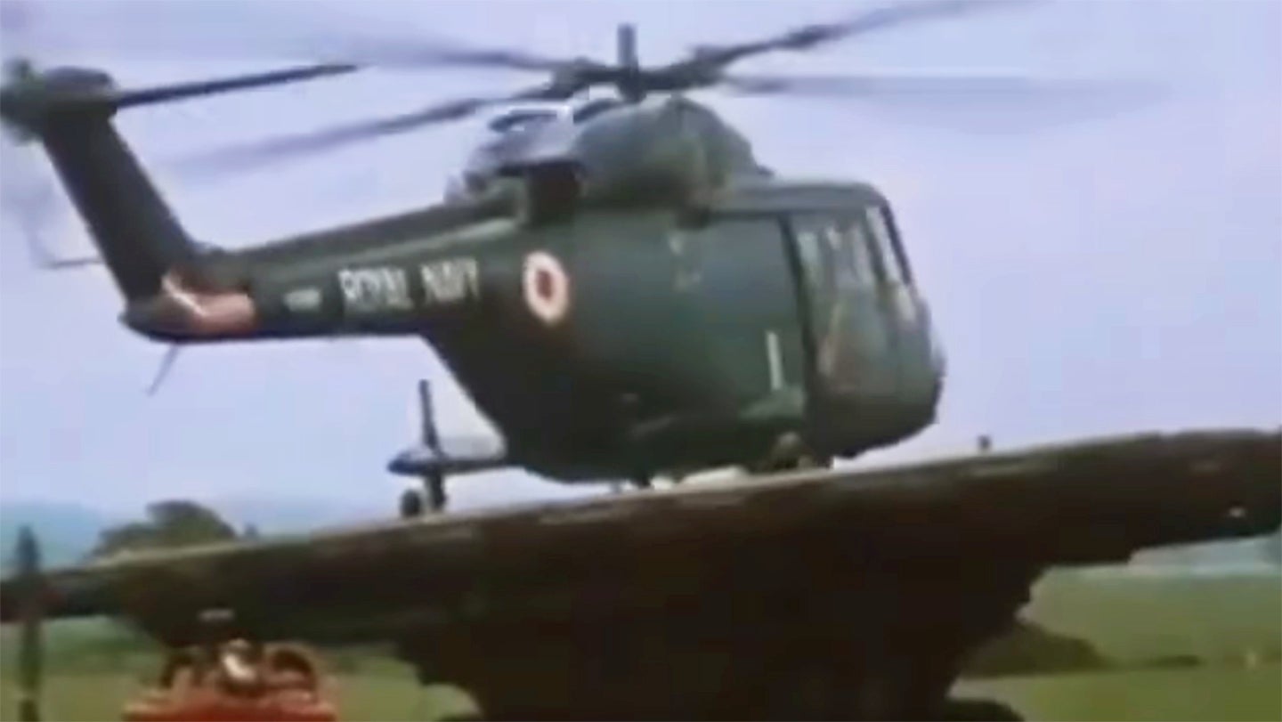 The footage almost certainly dates from the period after the first flight of the WG.13 prototype in March 1971 and before the initial-production Lynx HAS2 model entered service with the British Royal Navy in September 1976. In fact, the helicopter that we can see testing out the type’s deck-landing attributes could well be the first of the navalized prototypes, serial number XX469, which ended up being lost in an accident in November 1972. The three windows in the side door are certainly typical of the prototype batch.