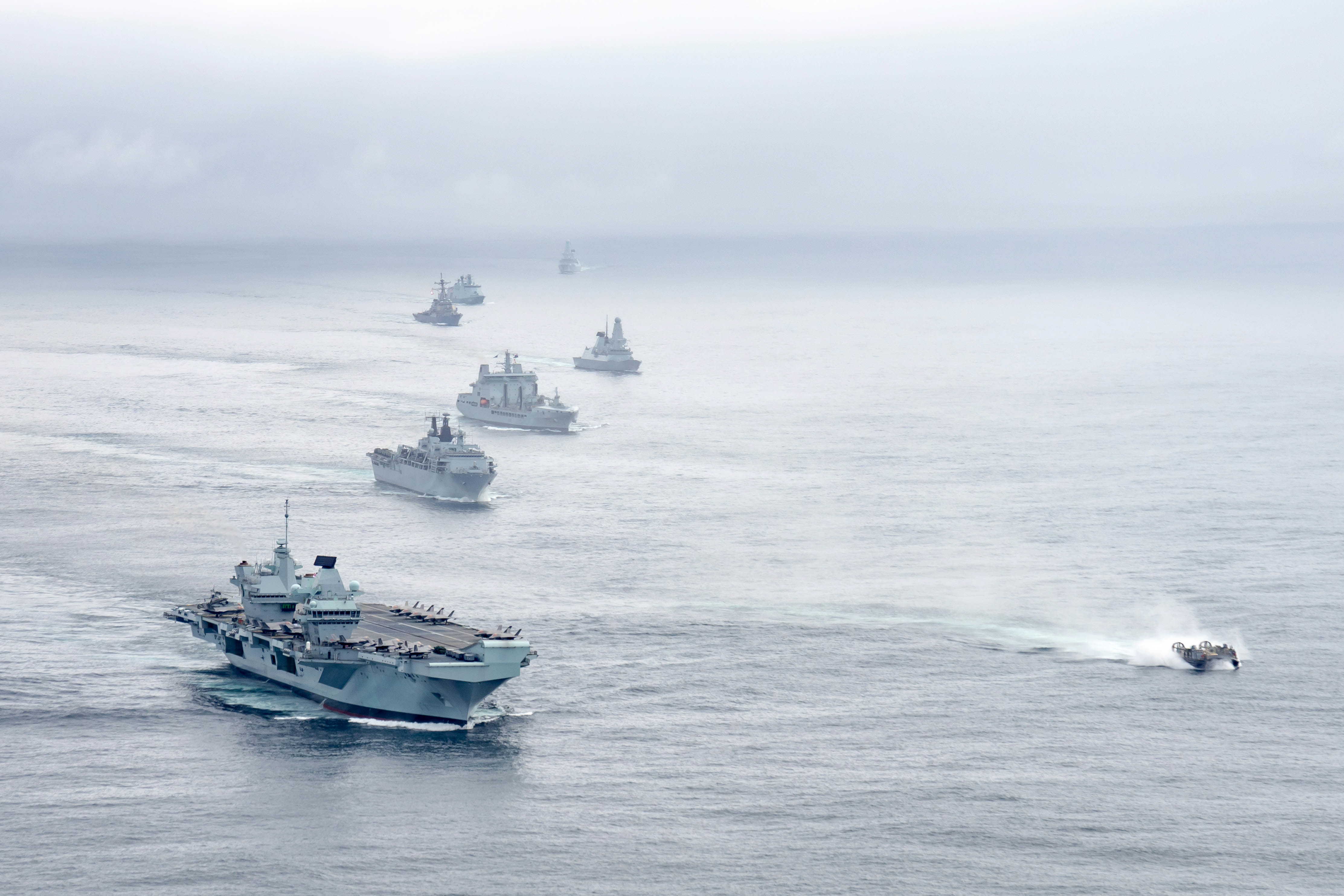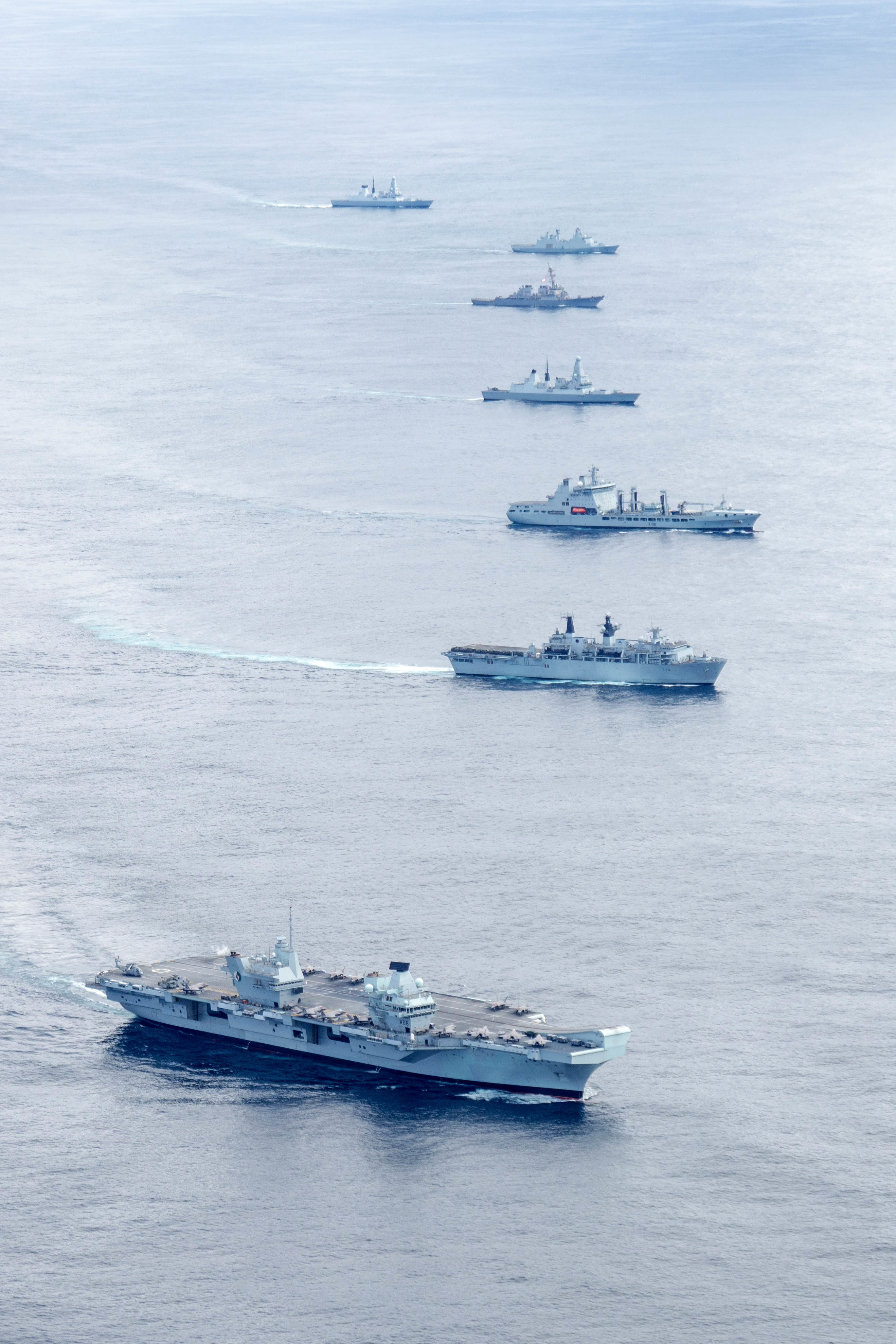 The Royal Navy assets for CSG21, meanwhile, are HMS Queen Elizabeth, the Type 45 destroyers HMS Diamond and HMS Defender, the Type 23 frigates HMS Kent and HMS Richmond, the replenishment tanker RFA Tidespring, the stores ship and fleet tanker RFA Fort Victoria, and an undisclosed Royal Navy Astute class nuclear attack submarine.