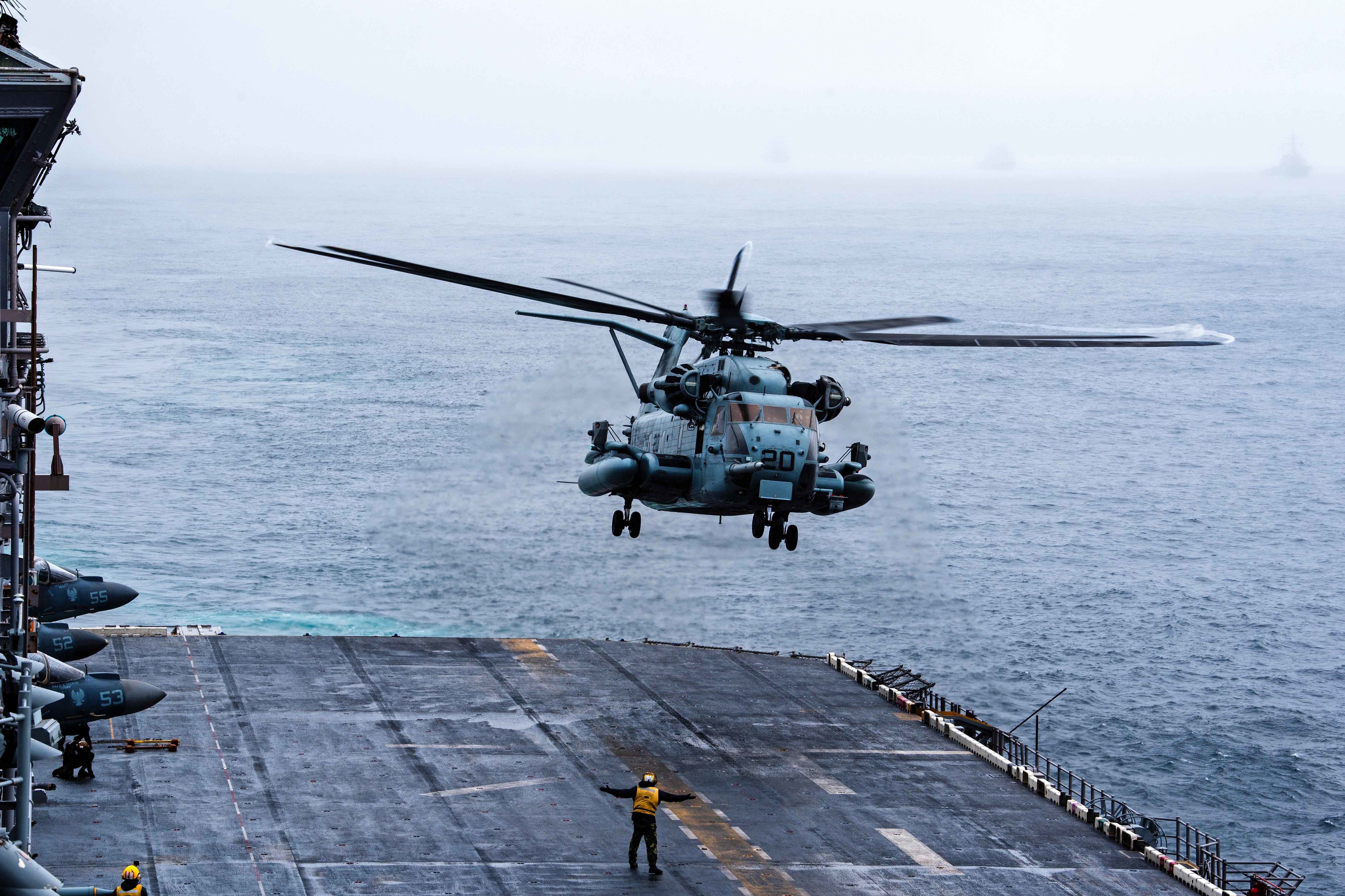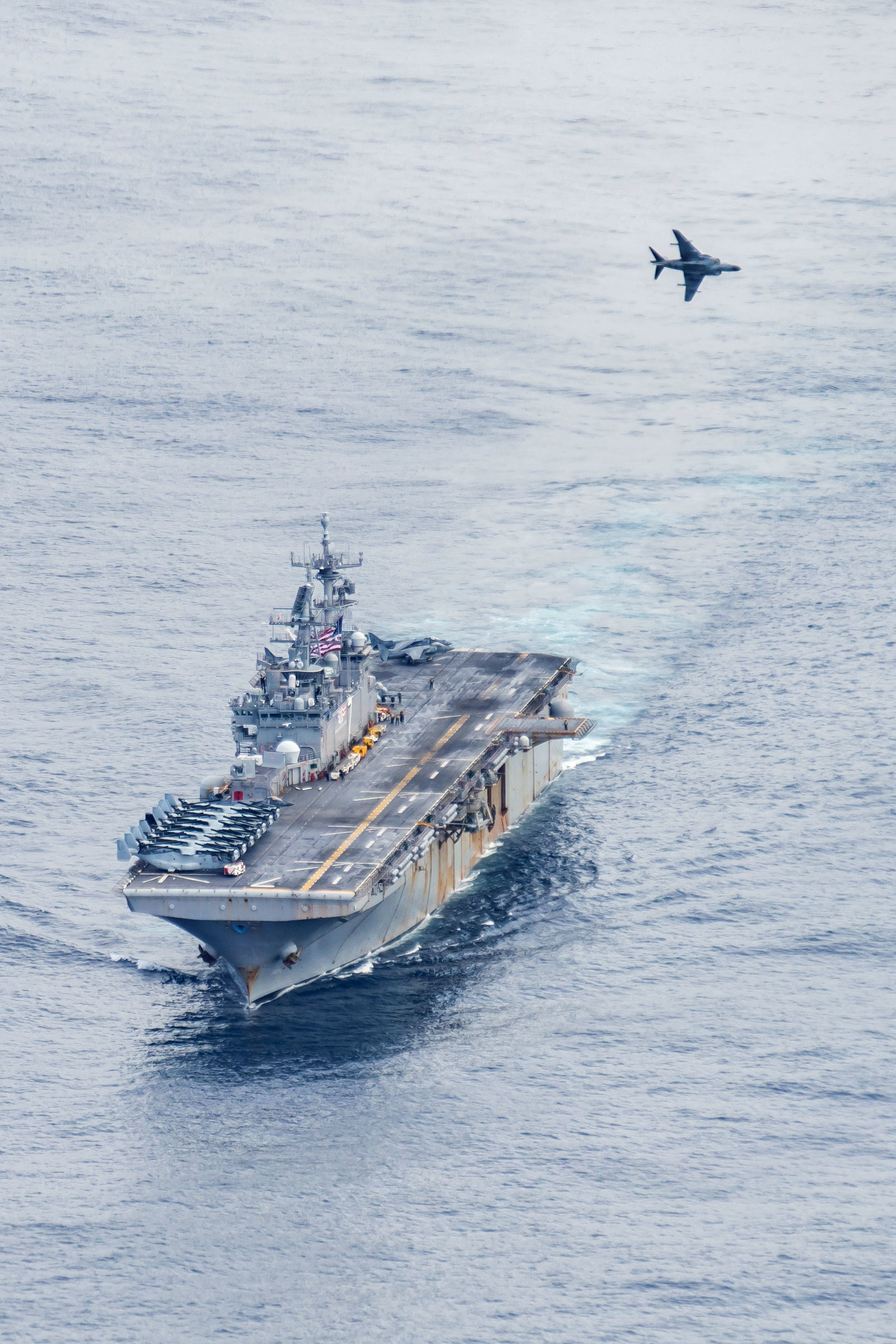 For its part, the IWOARG provided aircraft from Marine Medium Tiltrotor Squadron (VMM) 162 Reinforced, the aviation combat element of 24th MEU. A typical aviation combat element of this type normally includes 10 MV-22B Osprey tiltrotors, six AV-8B Harrier II attack jets, five RQ-21A Blackjack unmanned aerial vehicles, four CH-53E Super Stallion helicopters, four AH-1Z Cobra helicopters, and three or four UH-1Y Huey helicopters. Also attached is a pair of U.S. Navy MH-60S Seahawk helicopters, in this case from Helicopter Sea Combat Squadron (HSC) 26, the “Chargers,” on hand to provide search and rescue and additional utility capabilities.