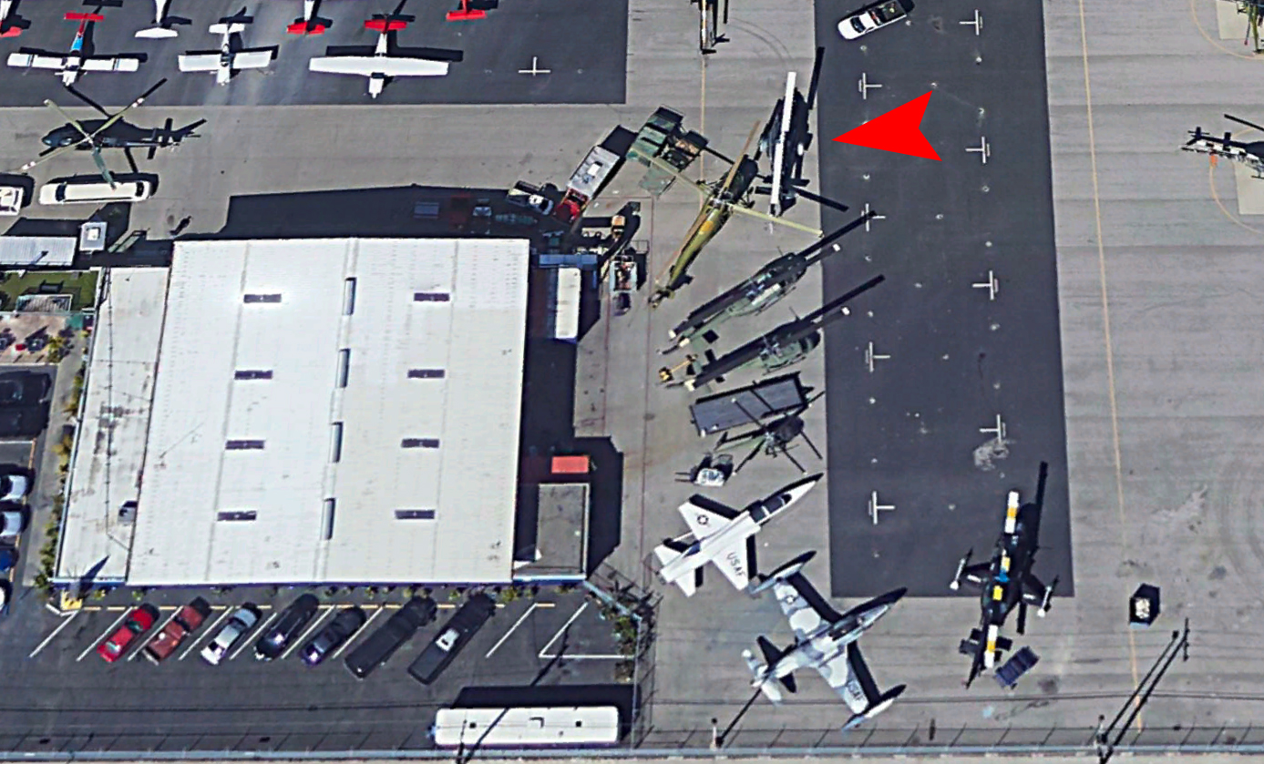 From what we can tell, she still sits outside the hangar of Celebrity Helicopters/Tomorrow’s Aeronautical Museum there as part of a display that includes other famous or iconic helicopters types: