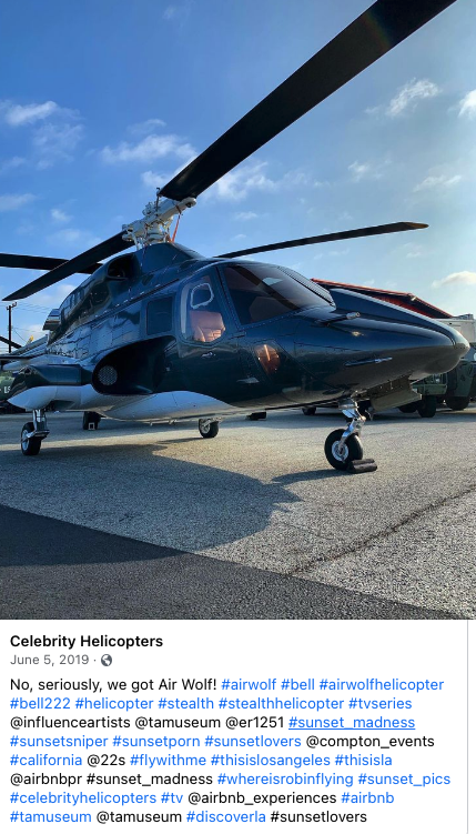 What’s so intriguing is that, from what we understand, it is very tough to get a private helipad in Los Angeles. So, this was basically an art installation, and to massive Airwolf fans like me, and maybe even you, the Lady is absolutely fine art, both in pop-culture and basic engineering aesthetic terms. The core Bell 222/230/430-series design remains one of the most attractive flying machines ever created. But really liking Airwolf and having a decommissioned Bell 222 with extremely accurate Airwolf modifications trucked and craned onto the roof of a home you plan of selling for a quarter of a billion dollars is a whole other level of commitment to the franchise.
