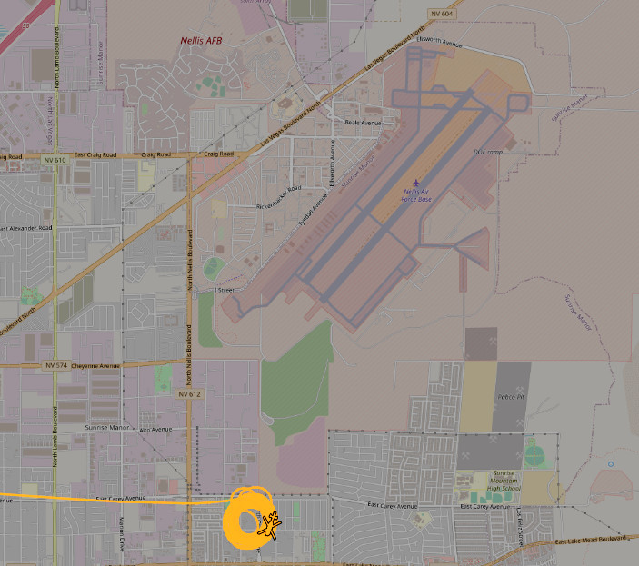 KVVU-TV, a local Fox affiliate in Las Vegas, said that the Clark County Fire Department responded to a reported plane crash at 2245 N. Christy Lane. This address is in a residential area less than three miles southwest of Nellis.