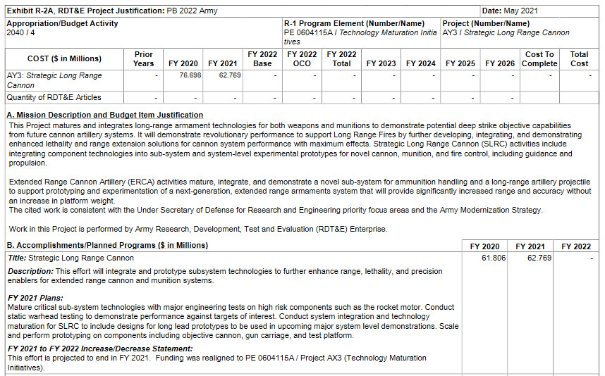 It is possible that this new funding stream, which includes work on “deep strike munition/munition systems,” may continue, in part, to fund certain activities related to the SLRC. However, even if this is the case, the requested $72.6 million would be spread between those efforts and the other areas of interest described in the Army budget documents. As such, this would still likely reflect a significant cut in funding for the cannon program, which had, by itself, received just over $61.8 million and almost $62.8 million in the 2020 and 2021 Fiscal Year budgets.