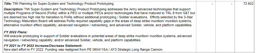 “This effort [SLRC] is projected to end in FY 2021,” the Army’s budget documents say to explain the request to “realign” this funding with the broader line item. The new, separate planning and prototyping effort “will execute prototyping in support of Soldier evaluations in potential areas of deep strike munition/munition systems, advanced navigation/networking capability, and/or advanced Soldier, vehicle, and platform capabilities.”