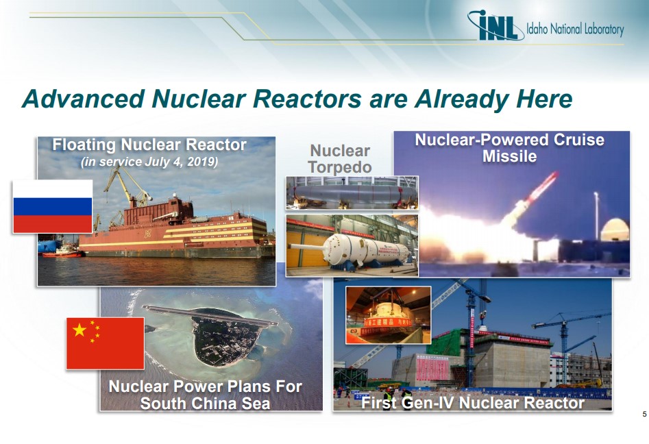 The United States isn’t the only nation pursuing new forms of nuclear technologies. For example, Russia has built the first of what could be a number of floating nuclear plants to be deployed across its Far North regions, and is even exploring mounting reactors on the Arctic seafloor, while China has similar plans for floating reactors intended for use in the geopolitically tense South China Sea.