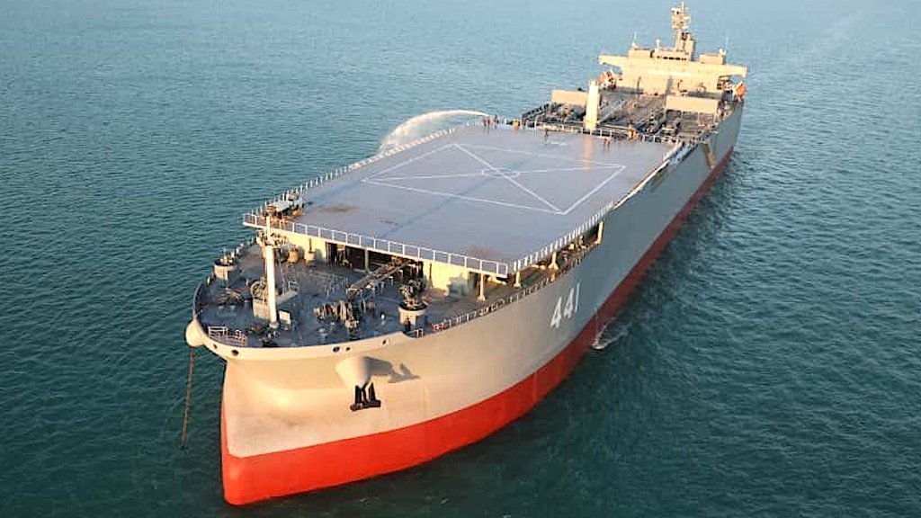 This, in turn, prompted reports that the ship could be delivering those boats, as well as other military cargoes, to Venezuela. Makran, which the Iranian Navy formally commissioned into service in January, is an oil tanker converted into what has been described as a “forward base ship” and now most notably features a relatively large open flight deck on its bow end. The vessel, which you can read more about in general here, also has a large crane for moving materiel around and would have ample space to serve as a more general transport, if required.