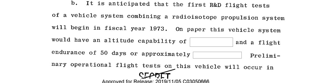 There were even plans to use radioisotope propulsion systems later in the program’s development, which were claimed to be able to give the drones 50-day endurance. These types of propulsion systems are powered by the heat given off by radioactive isotopes as they decay, and have been used for decades by NASA and the DOD for space missions. The Apollo missions to the moon and the Viking and Curiosity missions to Mars all used radioisotope systems to power various systems, which have no moving parts, can last decades, and can be miniaturized to fit in a variety of vehicles and systems.