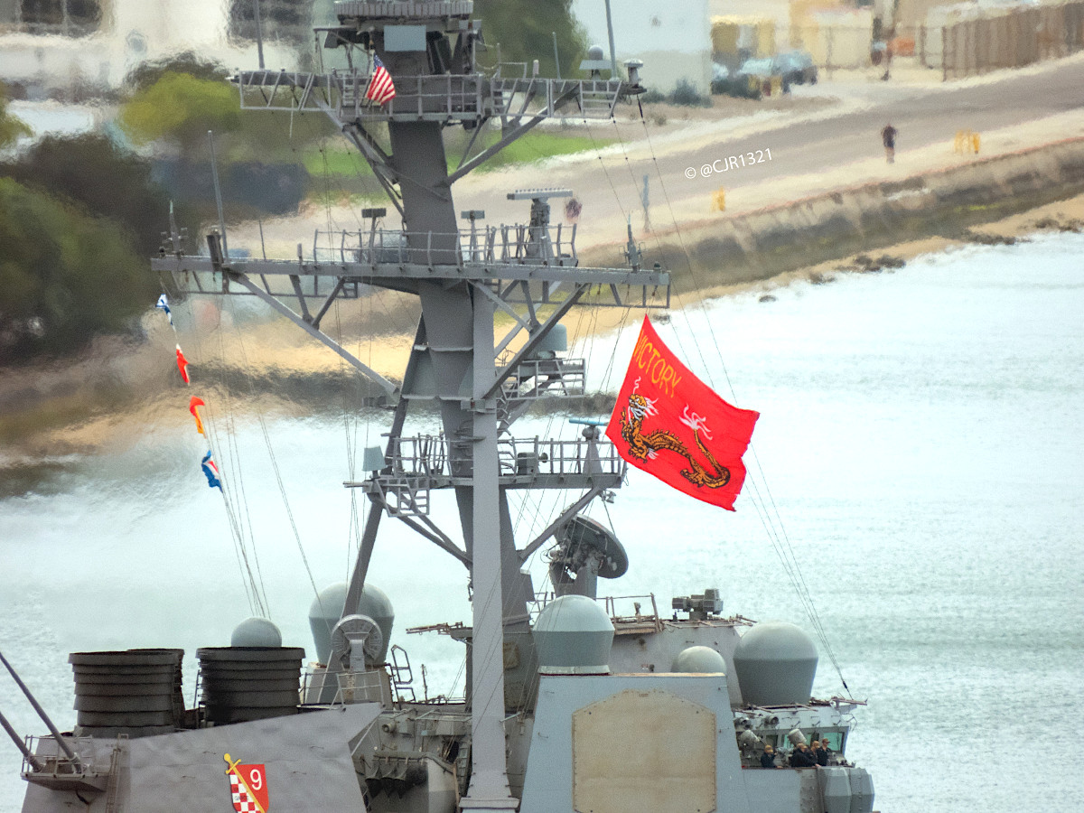 The USS Howard has now left San Diego again, flying a flag that reflects the storied history associated with its name and, in line with its motto, its crew’s readiness to pursue “victory” in whatever tasks they are assigned.