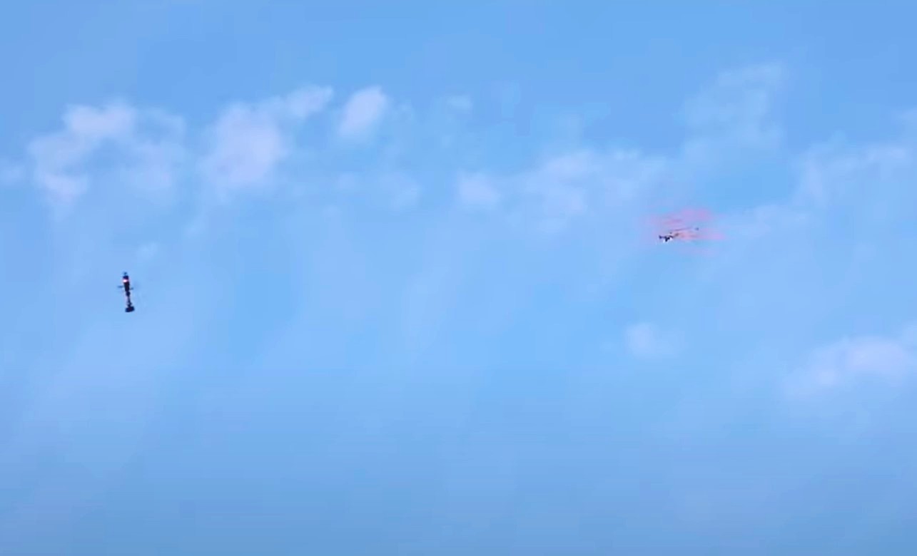 The recent demonstration was conducted at Eglin Air Force Base and saw the MFP technology demonstrator successfully neutralize “tactically-relevant drones.” In the footage DARPA shared to YouTube, the MFP interceptor can be seen bringing down a single quadcopter drone using a blast of its “stringy streamers” which appear to clog the drone’s rotors to the point of complete loss of lift a few seconds after impact.