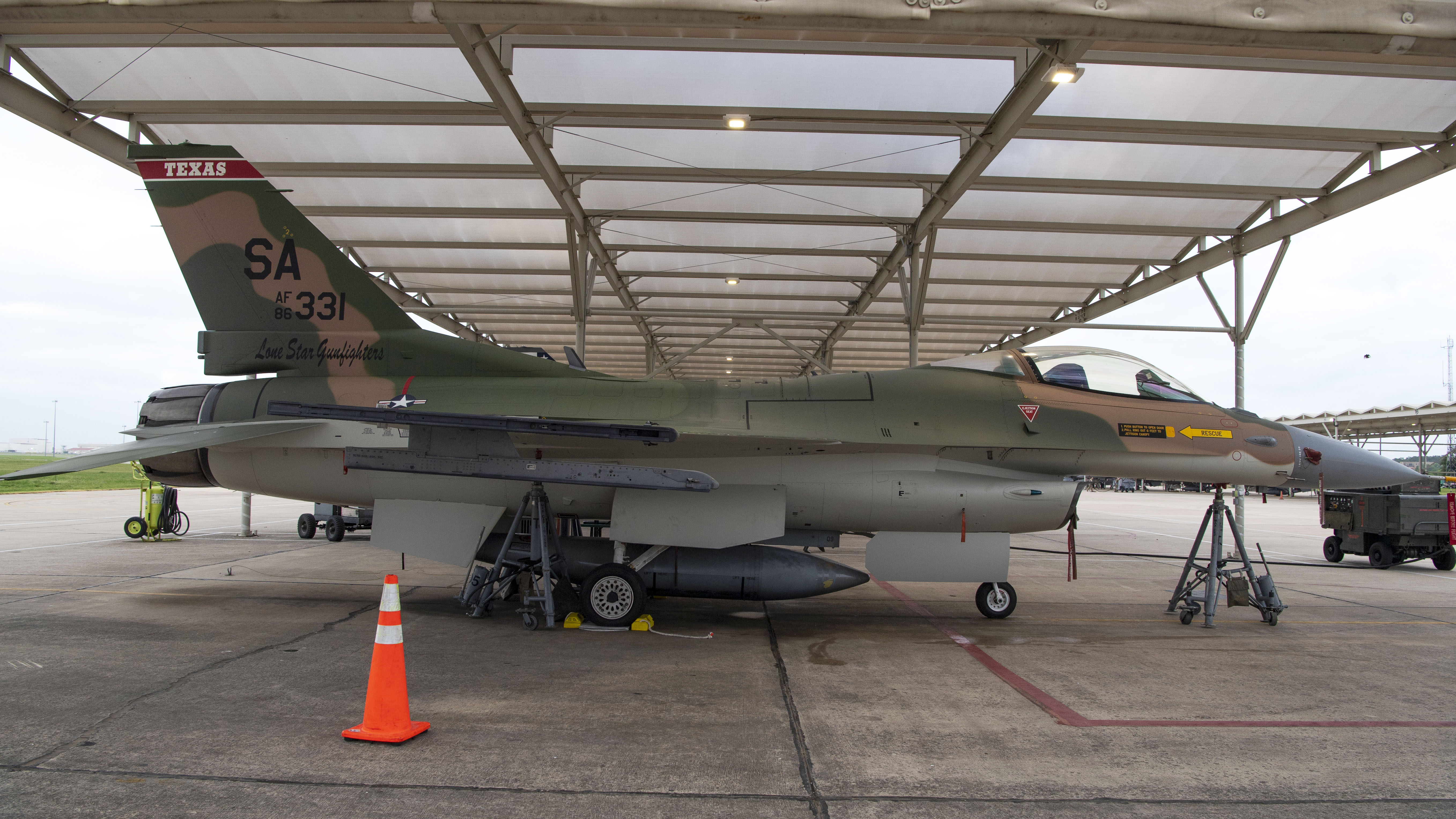 Another one of the 149th Fighter Wing’s specially painted F-16s was the subject of a recent innovation, when the wing unveiled a unique robotic system used to wash down its fighters keep them free of corrosion and extend their lifespan. You can read more about that proof of concept, and how it could also be rolled out to other Air Force units, in this previous story.