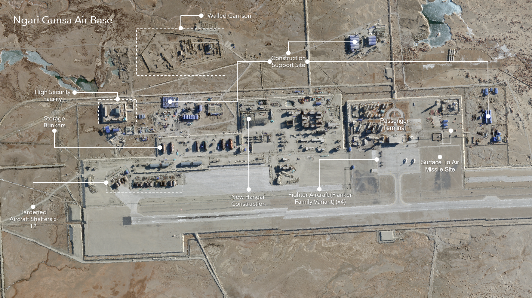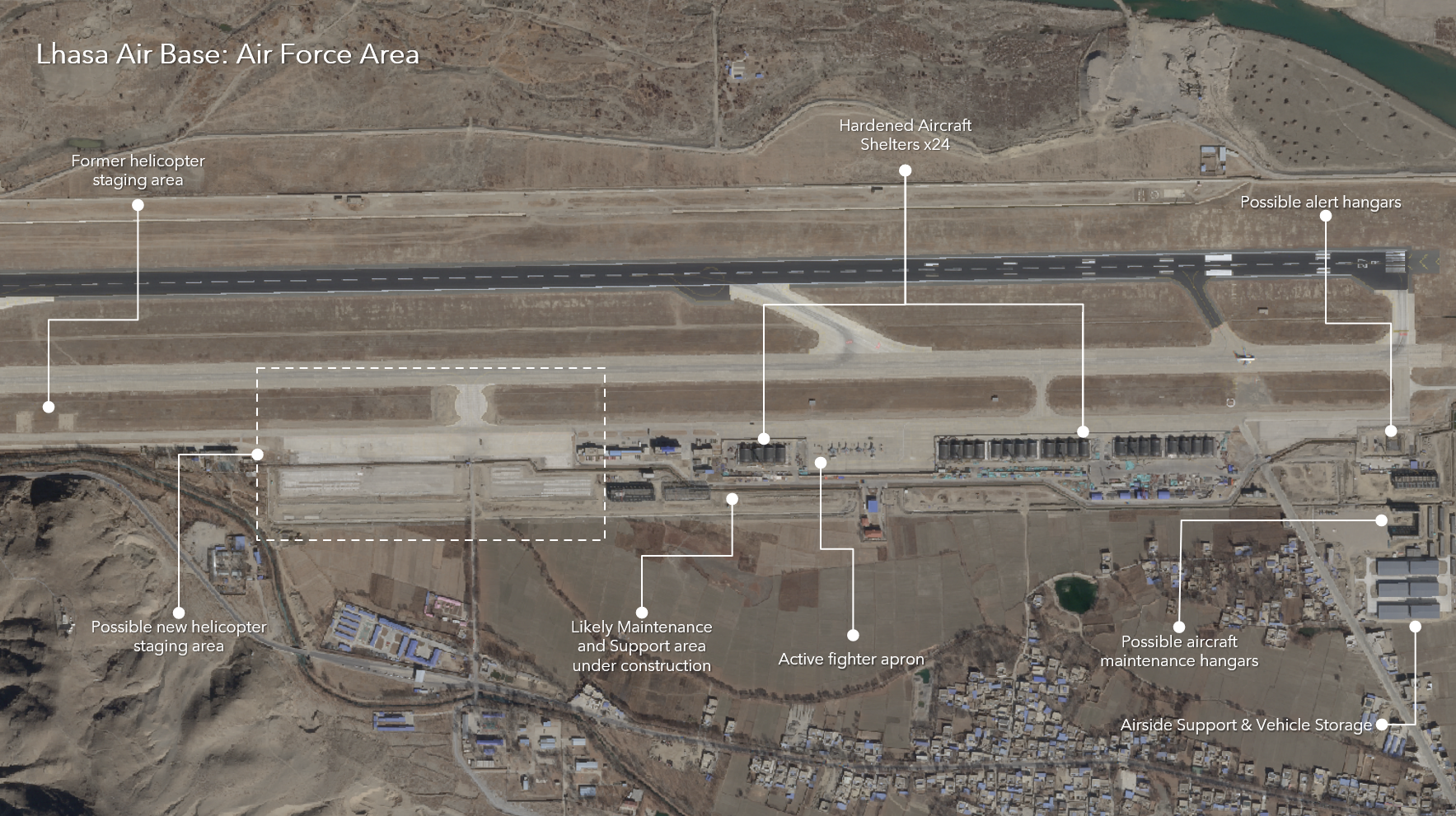 The observed construction of hardened aircraft shelters, and expanding support areas, indicate an intent to base larger fighter units at Ngari Gunsa and suggests that China is actively aiming to fill assessed gaps in its airpower capabilities along this sector of its western flank. This assessment may be influenced by the deployment of Rafale fighters of the Indian Air Force at Ambala Air Force Station located just across the border from Ngari Gunsa.
