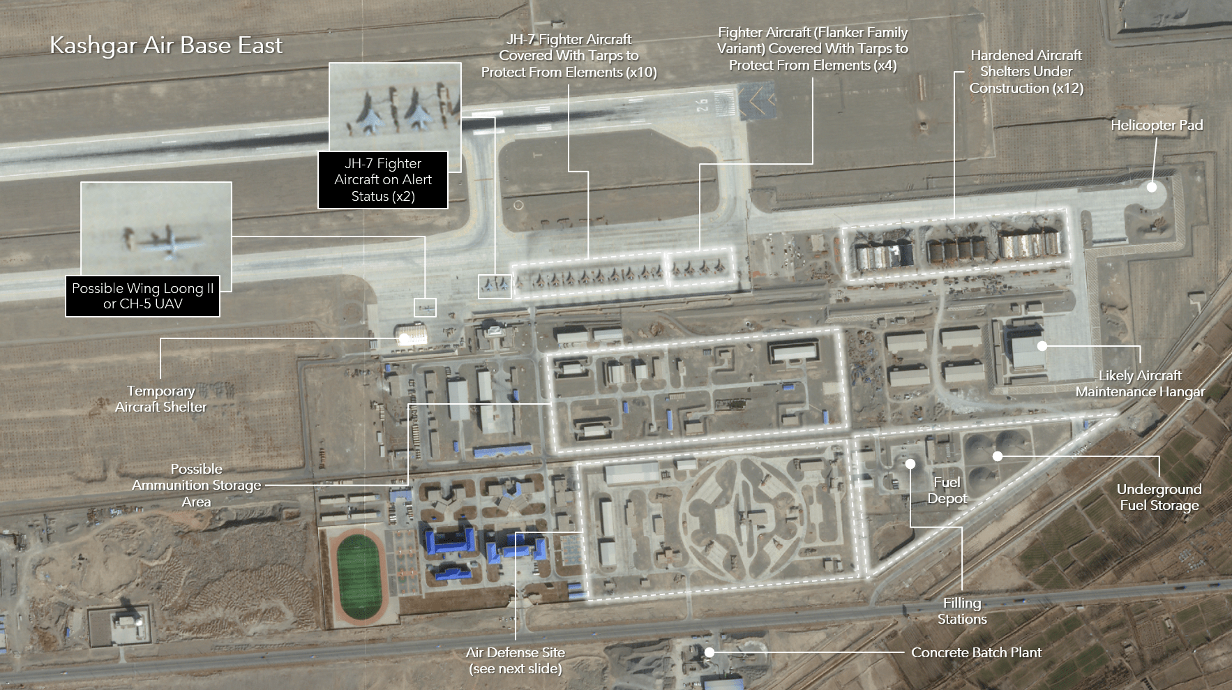 Though much of this infrastructure development is focused on enabling and supporting fixed-wing airpower, there are many other significant aspects of this relentless infrastructure expansion effort. This includes expanding or building entirely new bases for helicopters, as well as ground forces, to include air defense assets, and logistics facilities.