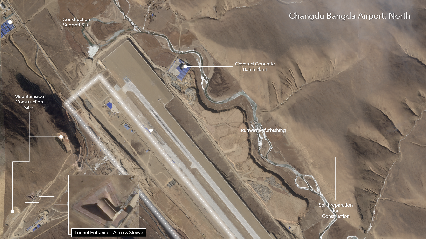Located at an altitude of over 14,400 feet, the opening of a more than 18,000-foot second runway could greatly enhance the operation of a variety of aircraft within the PLAAF inventory. Especially with two long operational runways, a military role for Bangdu Changda airport could significantly increase the capacity for air operations over Eastern Tibet. The underground facilities would also be able to ensure a protected presence of PLAAF aircraft and weapon systems.