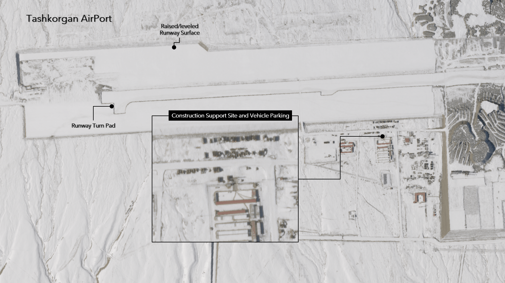 In addition to the new runway, a new support and maintenance area has been built up, containing several hangars that have also been observed hosting unmanned aerial vehicle (UAV) operations. Satellite imagery also shows the construction of an underground tunnel near the new runway, the purpose of which is difficult to ascertain through imagery alone, but could possibly be used for unobserved or protected vehicular movement and munitions handling within the airbase.