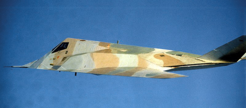 A similar camouflage pattern had previously been applied to one of the pair of Have Blue demonstrator aircraft that preceded the F-117 and which proved many of the concepts of the later design. Most importantly, the Have Blue jets showed that the company’s exotic “Hopeless Diamond” faceted design was actually feasible.