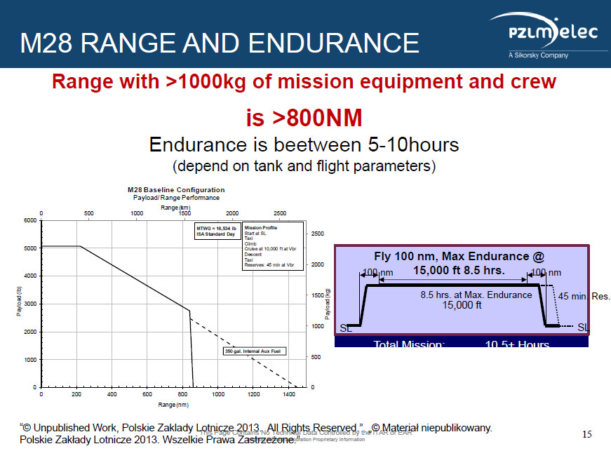 In the past, PZL Mielec has touted the M28, broadly, as having “best in class distance per payload STOL [short takeoff and landing] capability,” as well as a range of up to 800 nautical miles with as much as 1,000 kilograms, or around 2,200 pounds, of mission equipment installed. That company has also said the design has operational endurance of between five and 10 hours, depending on fuel load and flight profile.
