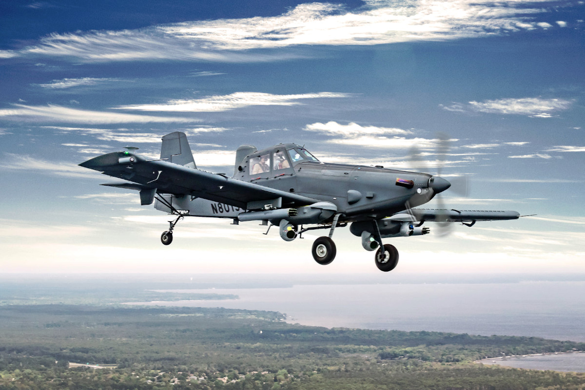 The other three entries are two-seat single-engine turboprop light attack aircraft. Leidos lead a team offering the Bronco II, an unusual pusher-prop design originally developed in South Africa that you can read more about here. L3Harris partnered with Air Tractor to submit AT-802U Sky Warden, the latest iteration of the latter company’s armed derivative of the AT-802 crop-duster. Textron’s submission is the AT-6E Wolverine, its most recent light attack variant of the T-6 Texan II trainer.