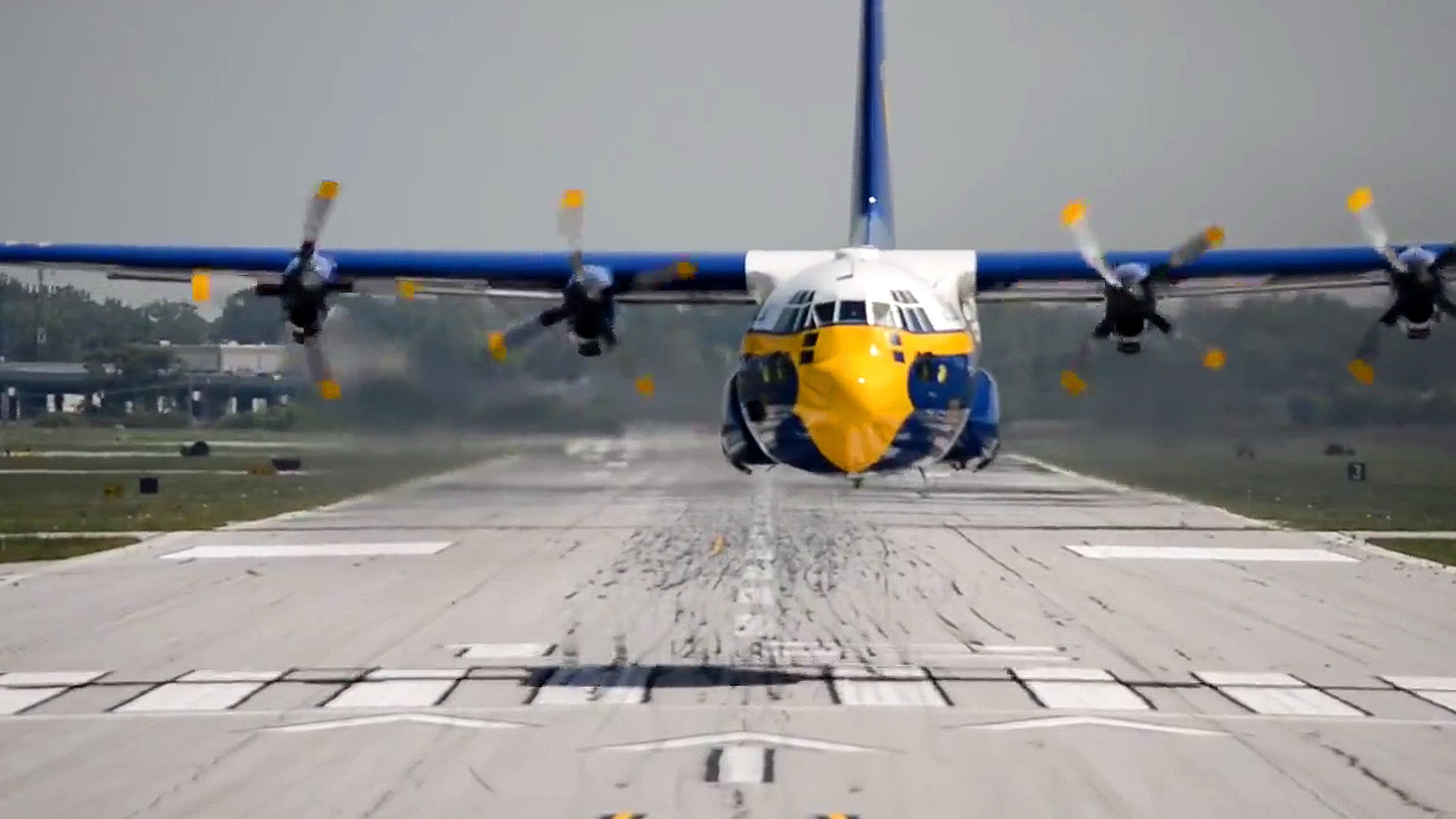 Fat Albert has never been shy when it comes to performing for the public; it flies its own demo at every Blue Angels show site, and it’s very impressive. Part of that display includes a takeoff and a low, high-speed transition followed by a triumphant climb. The video below provides an awesome perspective on what this looks like head-on: