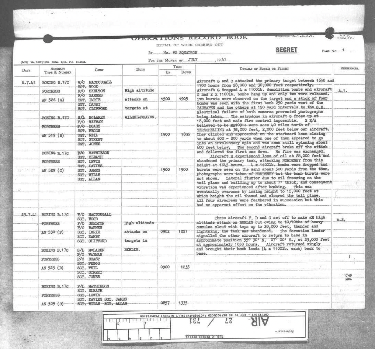 By the time of the B-17’s combat debut, on July 9, 1941, the RAF’s No. 90 Squadron had moved to an airfield at nearby Polebrook. Their first target was Wilhelmshaven, on the German coast, home to an extensive base belonging to the Kriegsmarine, or German Navy, in what the British media at the time described as a “stratosphere raid,” due to the high altitude at which it was flown.