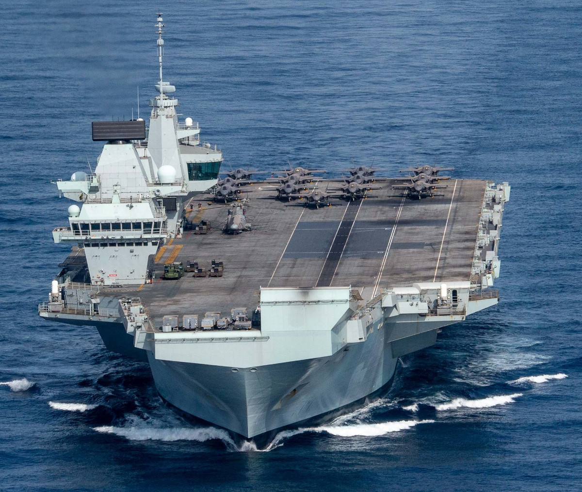 is accompanying the Queen Elizabeth on her maiden operational cruise as part of the U.K.-led multi-national Carrier Strike Group 21 (CSG21). U.S. Marine Corps F-35B Joint Strike Fighters are also embarked on the British carrier, along with U.K. Royal air Force F-35Bs and Royal Navy Merlin helicopters.