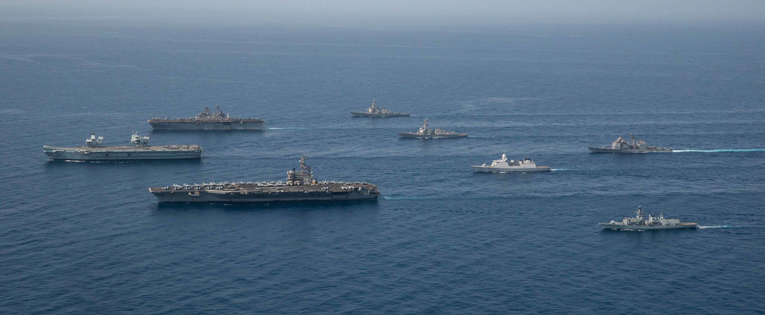 The U.K. Royal Navy’s aircraft carrier HMS Queen Elizabeth linked up with one of her American counterparts, the Nimitz class USS Ronald Reagan, as well as the Wasp class amphibious assault ship USS Iwo Jima, among other warships, for a large force exercise in the Gulf of Aden today. This was a major demonstration of allied naval power in a body of water that forms a maritime crossroads between a number of strategically significant areas.