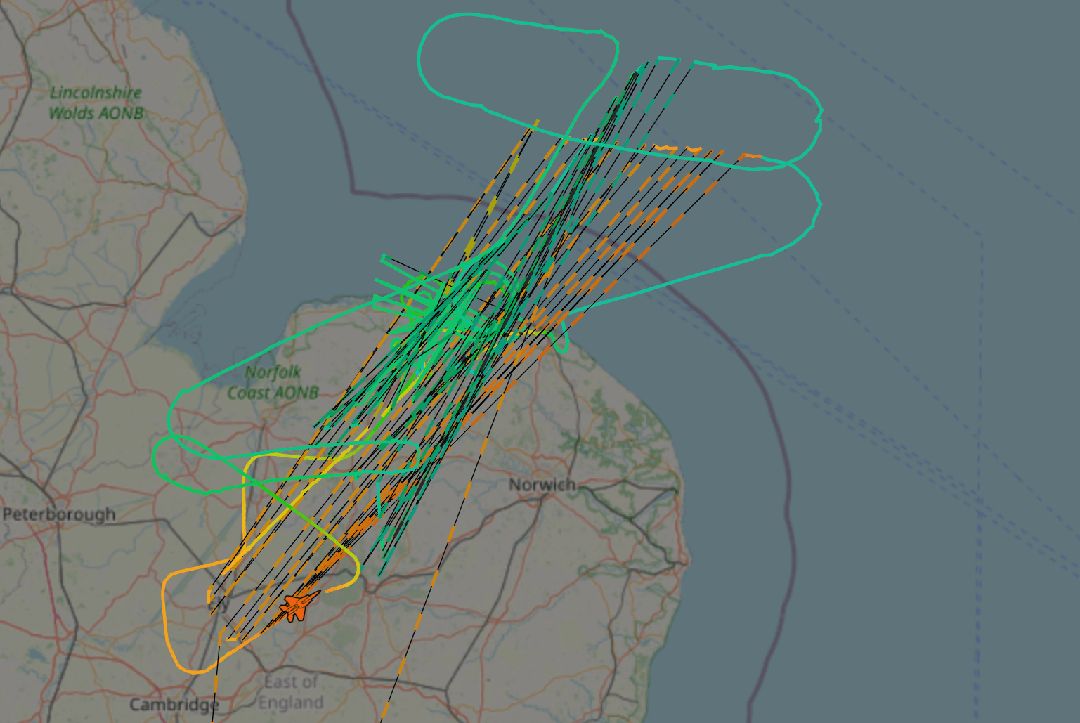 Online flight tracking data available from ADS-B Exchange, seen further below, shows the jet taking off at approximately 9:02 AM local time before heading out over the North Sea coast and not returning to the airfield until around 10:56 AM.