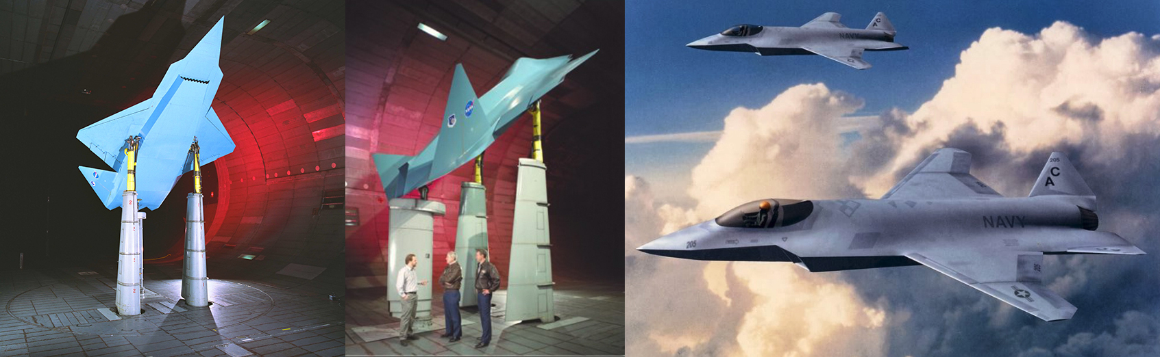 The outward-canted tailfins are prominent, but there’s no sign, as yet, of horizontal tail surfaces, or canard foreplanes. In the general configuration, the aircraft may have similarities in some of the Joint Advanced Strike Technology (JAST) designs that preceded the Joint Strike Fighter program, as well as developmental initiatives like Subsonic High Alpha Research Concept (SHARC), which was evaluated by NASA in the 1990s.